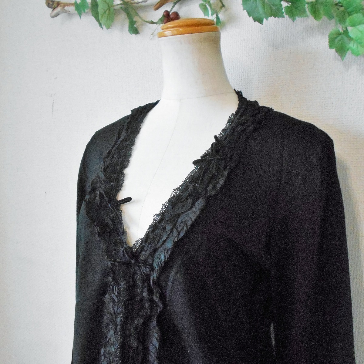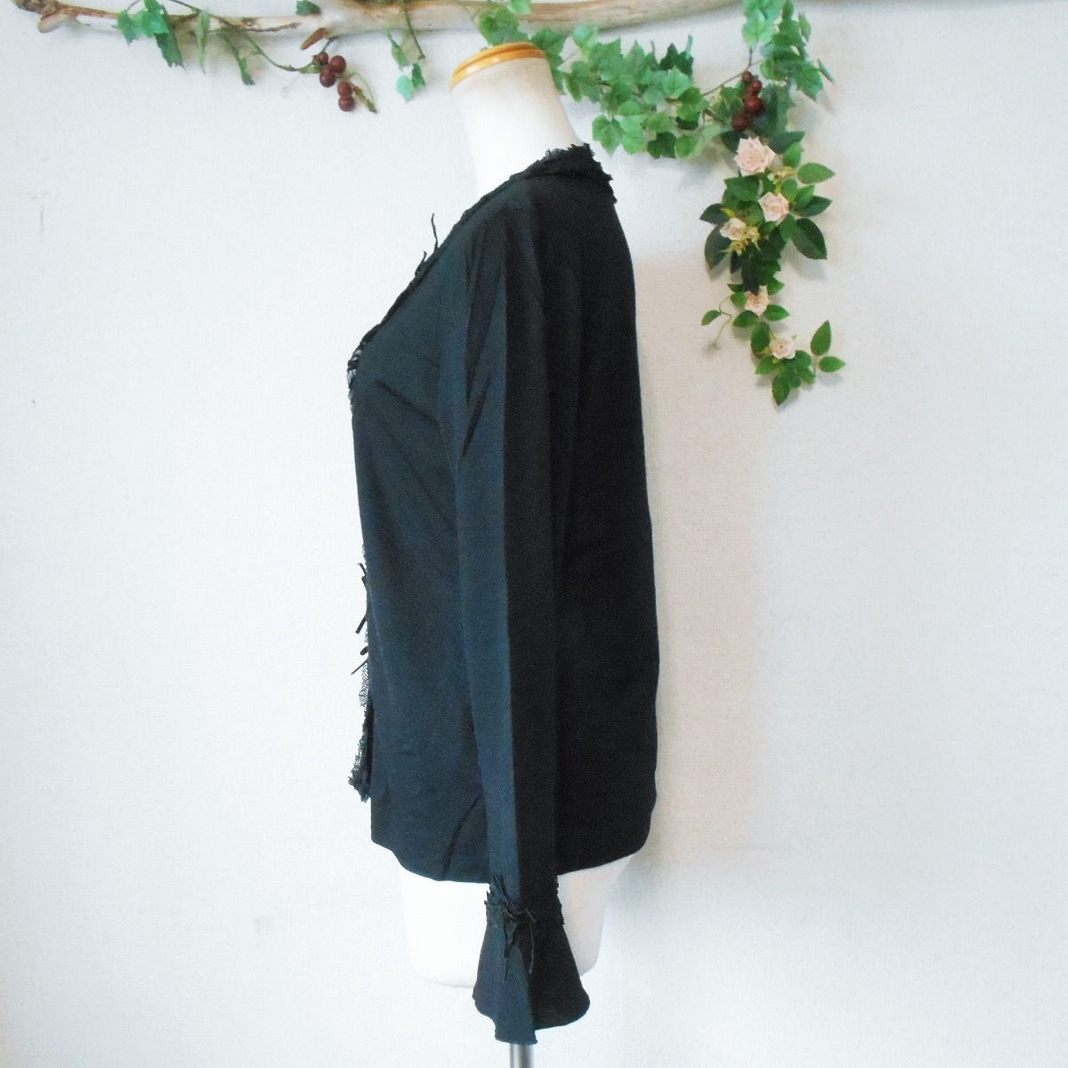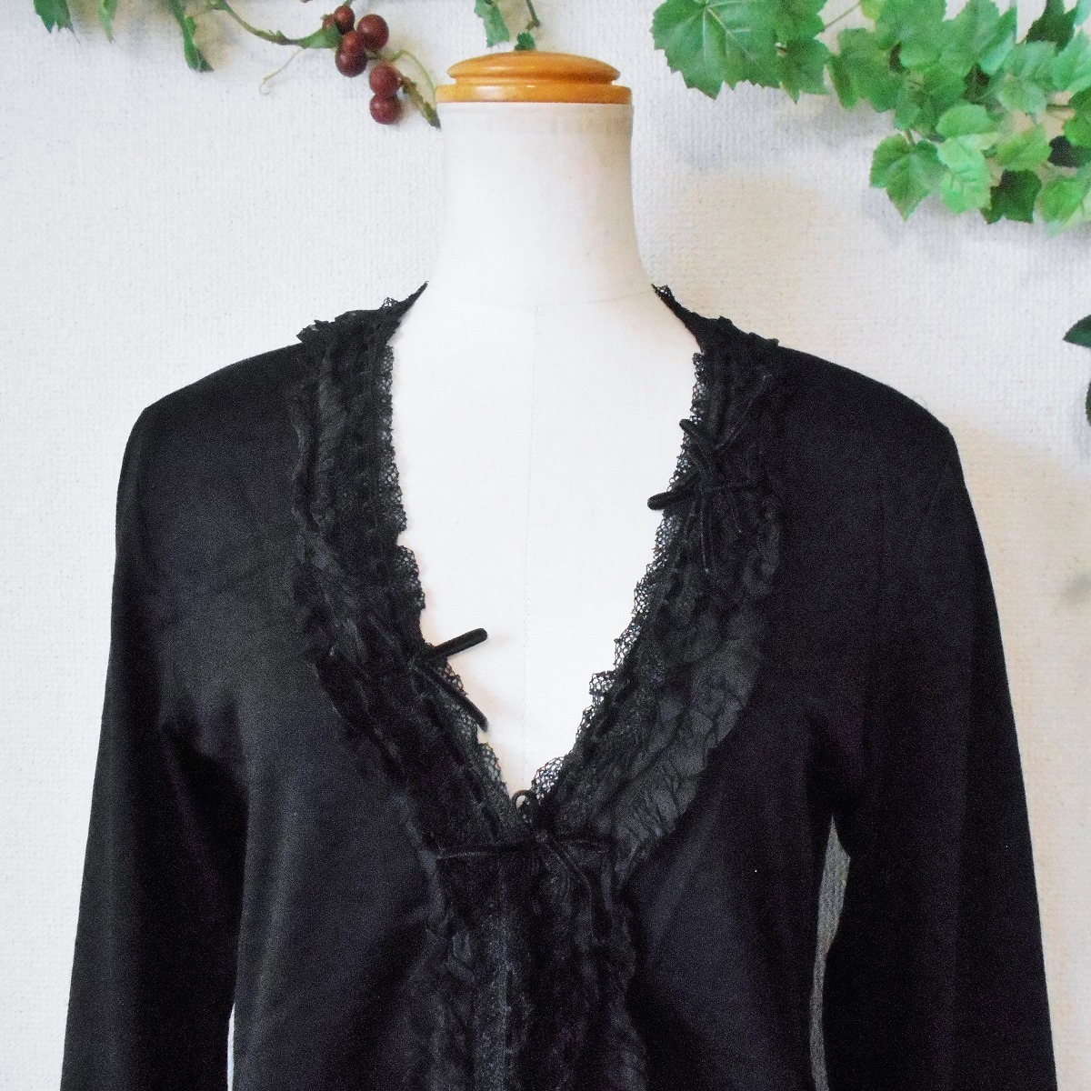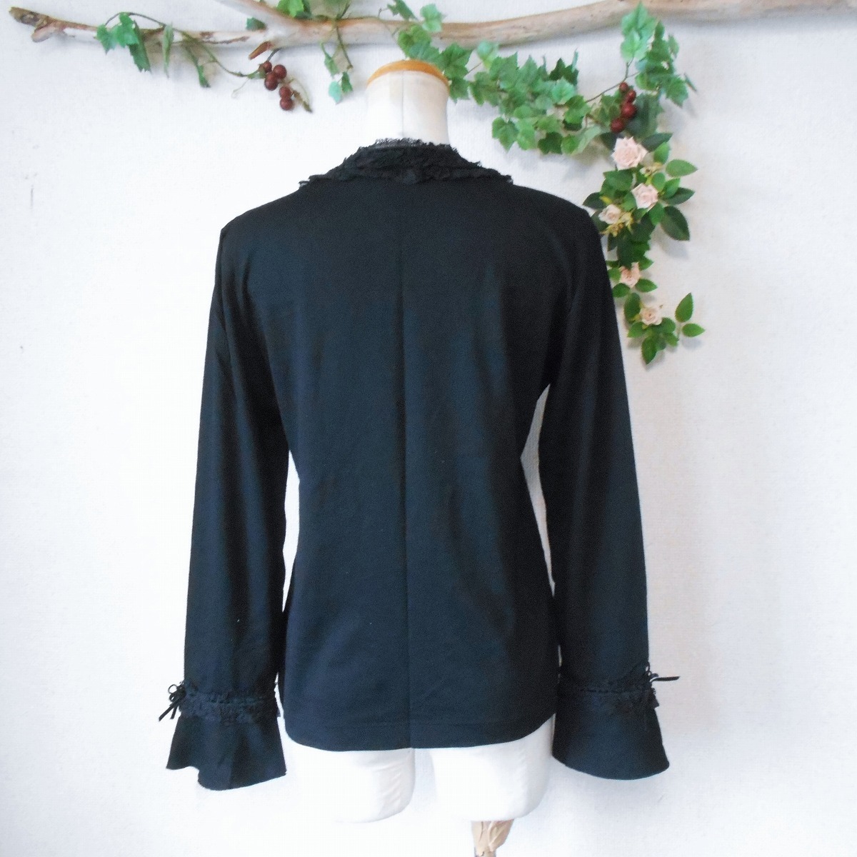 インゲボルグ INGEBORG 春夏秋 フリル & はしご リボン 使用 薄手 カーディガン 黒 日本製 11