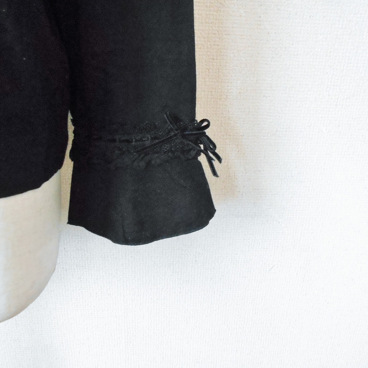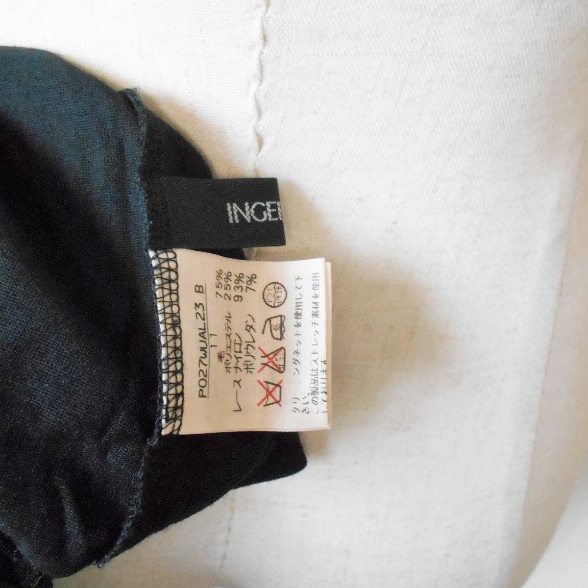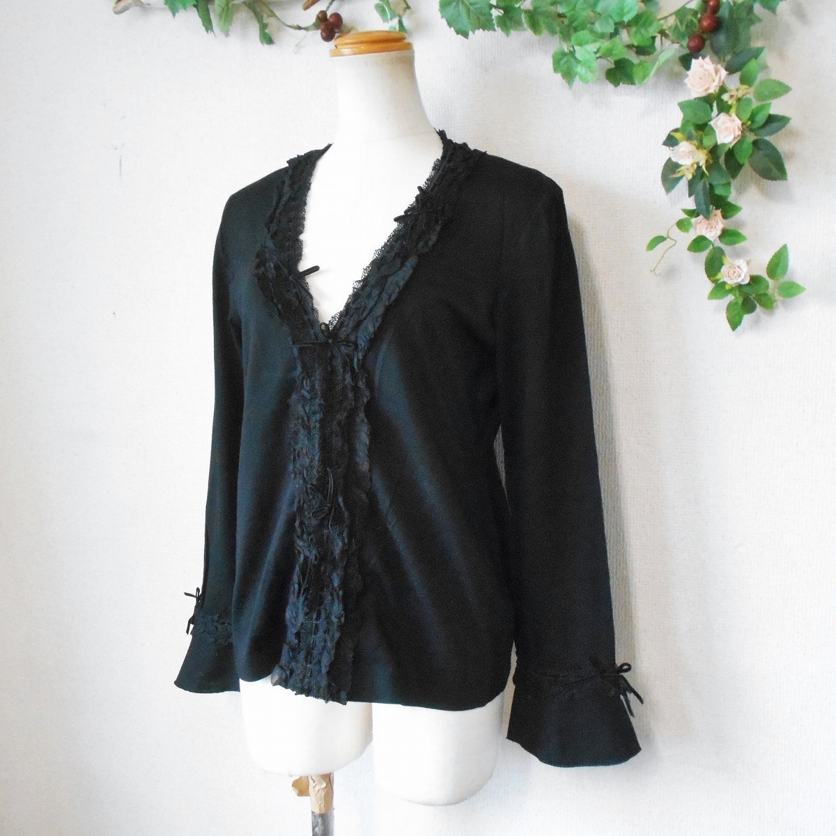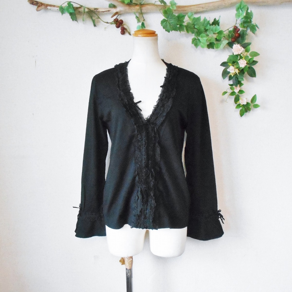 インゲボルグ INGEBORG 春夏秋 フリル & はしご リボン 使用 薄手 カーディガン 黒 日本製 11