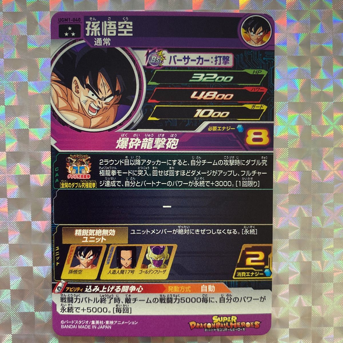 UGM1弾スーパーレア/ 孫悟空(通常)/ UGM1-040/ 技:爆砕龍撃砲/ スーパードラゴンボールヒーローズ/ レアリティ:☆☆☆/ BANDAI