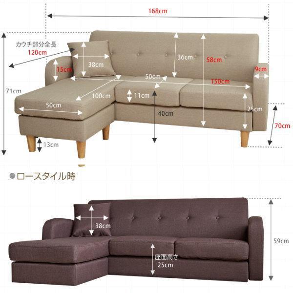 タイトル | 送料無料 北欧テイストデザイン 3人掛けカウチソファ 横幅168cmコンパクト SPI-BE |