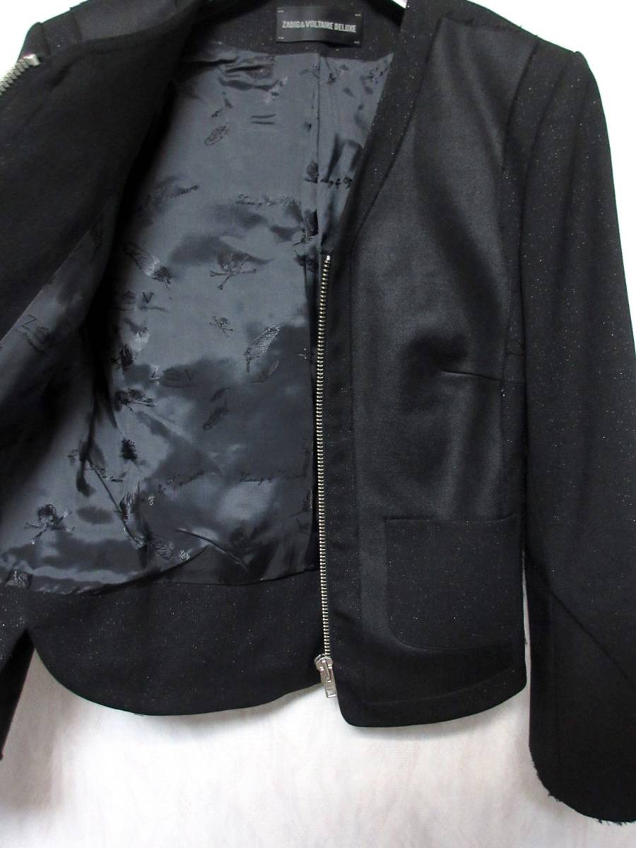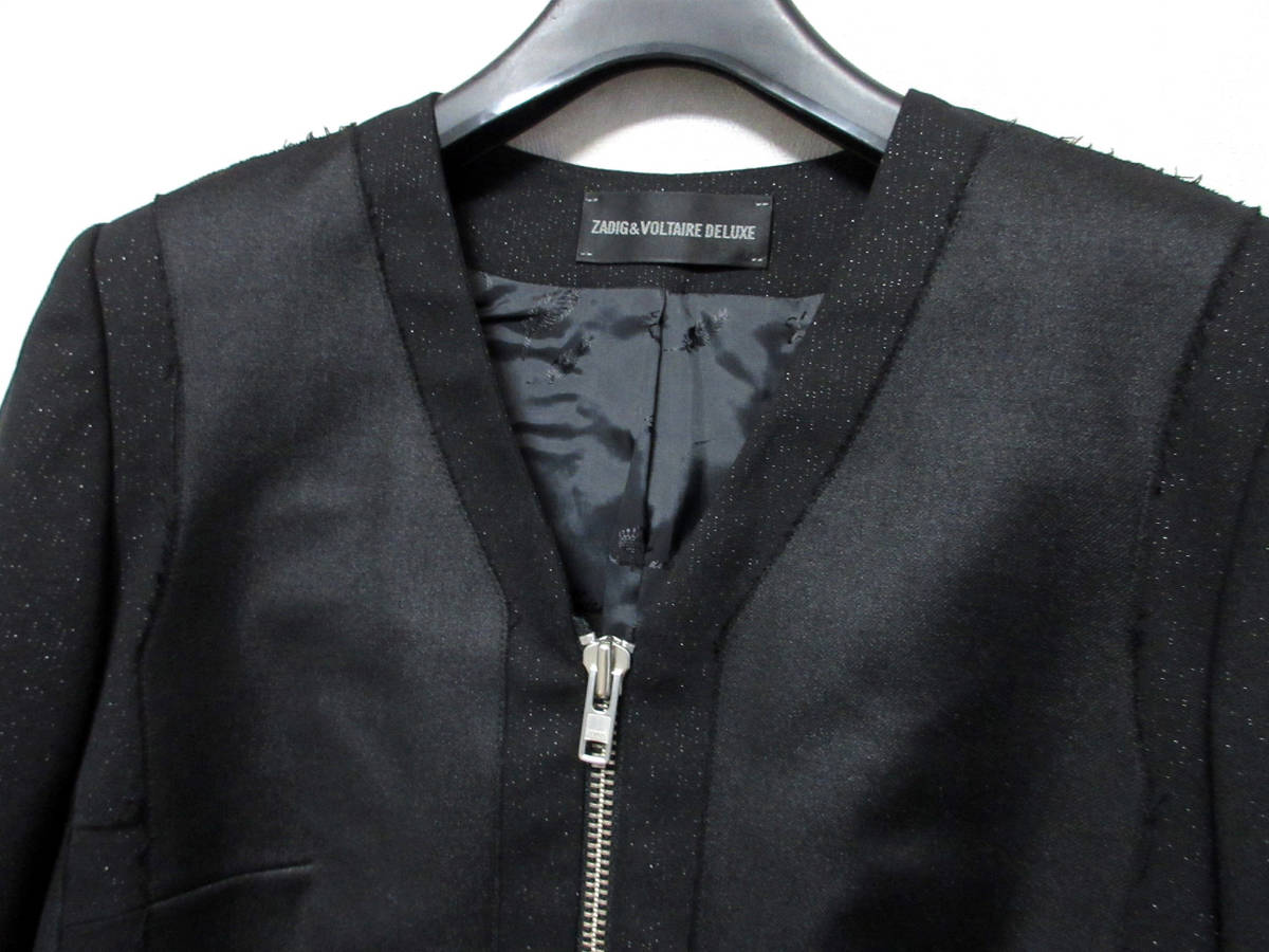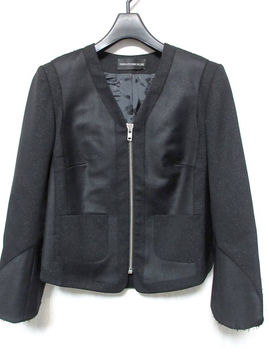 ザディグ エ ヴォルテール ZADIG&VOLTAIRE ジップアップ ノーカラージャケット 黒 ブラック 亥1684