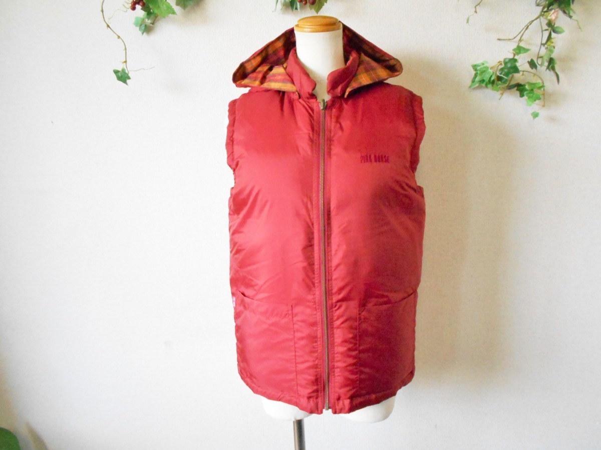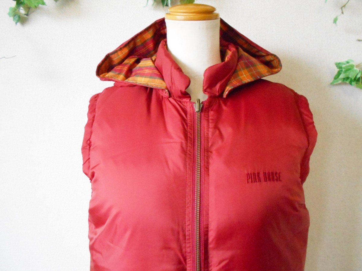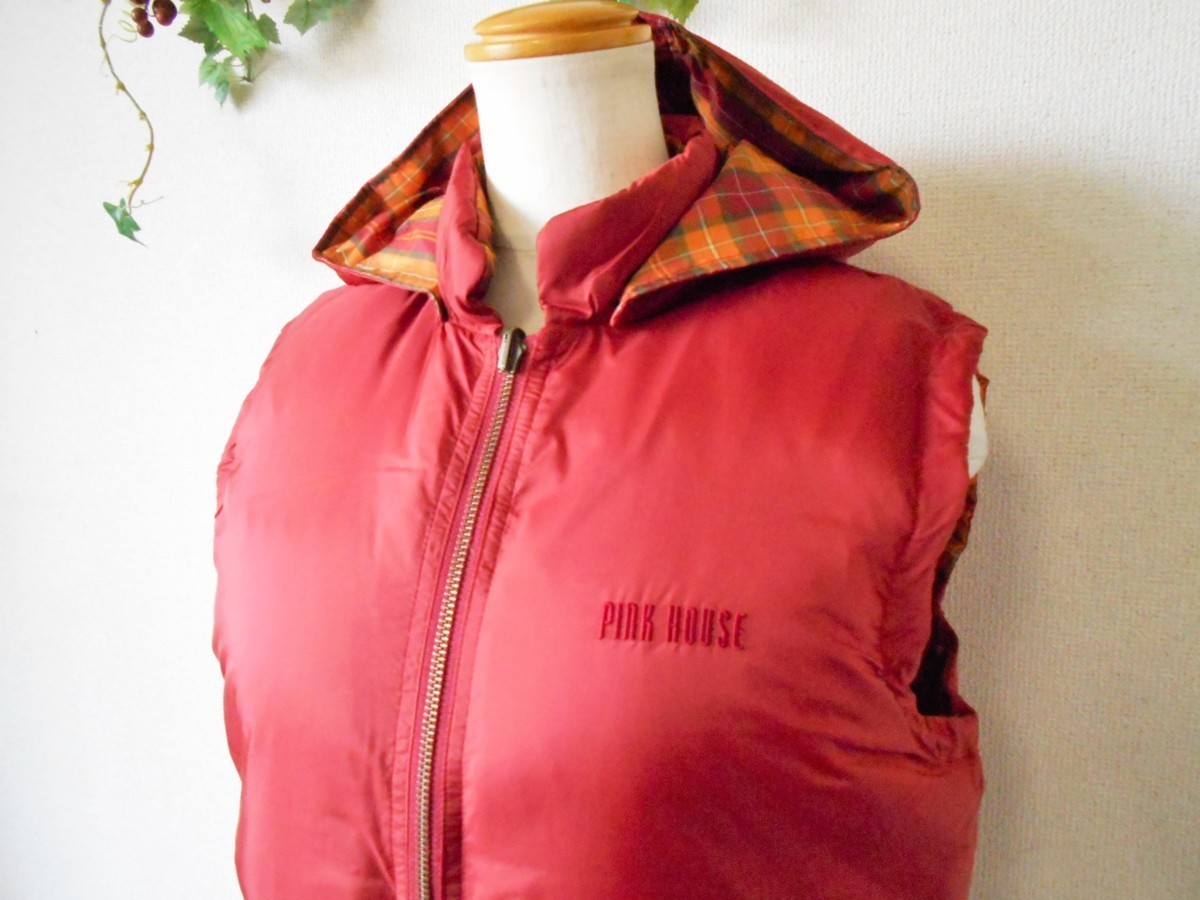 【ポイント】ピンクハウスのダウンベストになります。リバーシブルで赤系の面とチェック柄面の2Wayです。