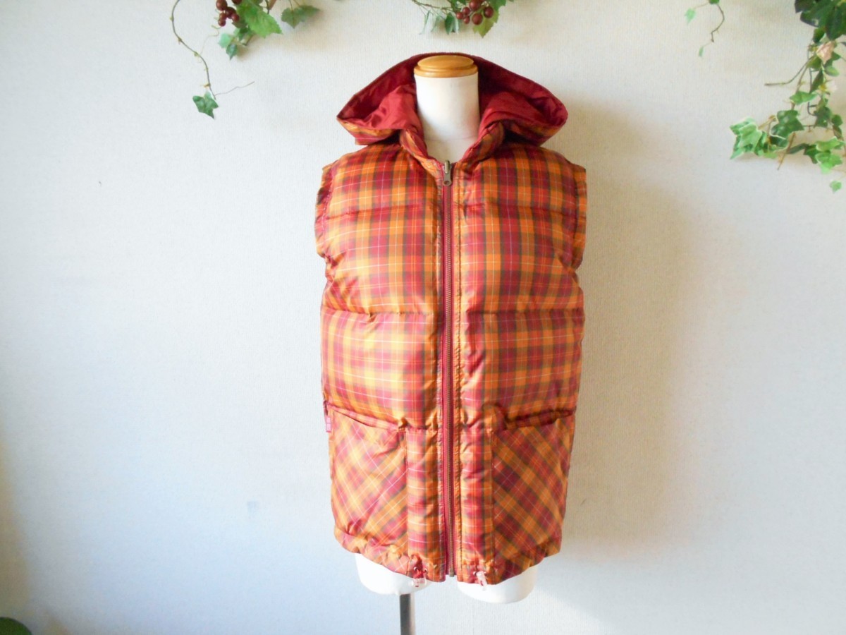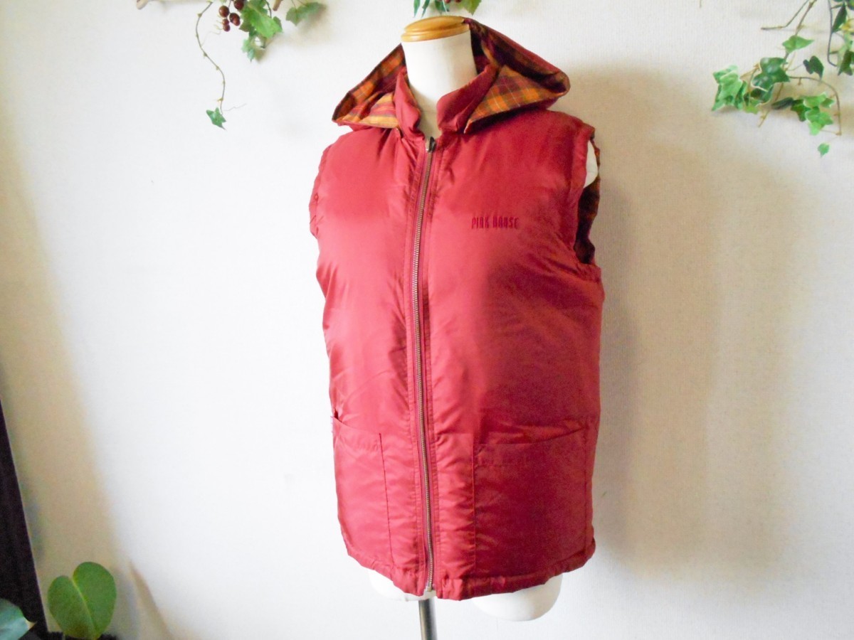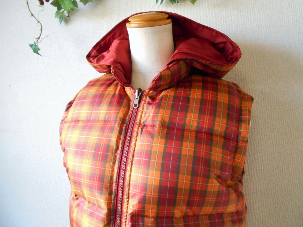 【ポイント】ピンクハウスのダウンベストになります。リバーシブルで赤系の面とチェック柄面の2Wayです。