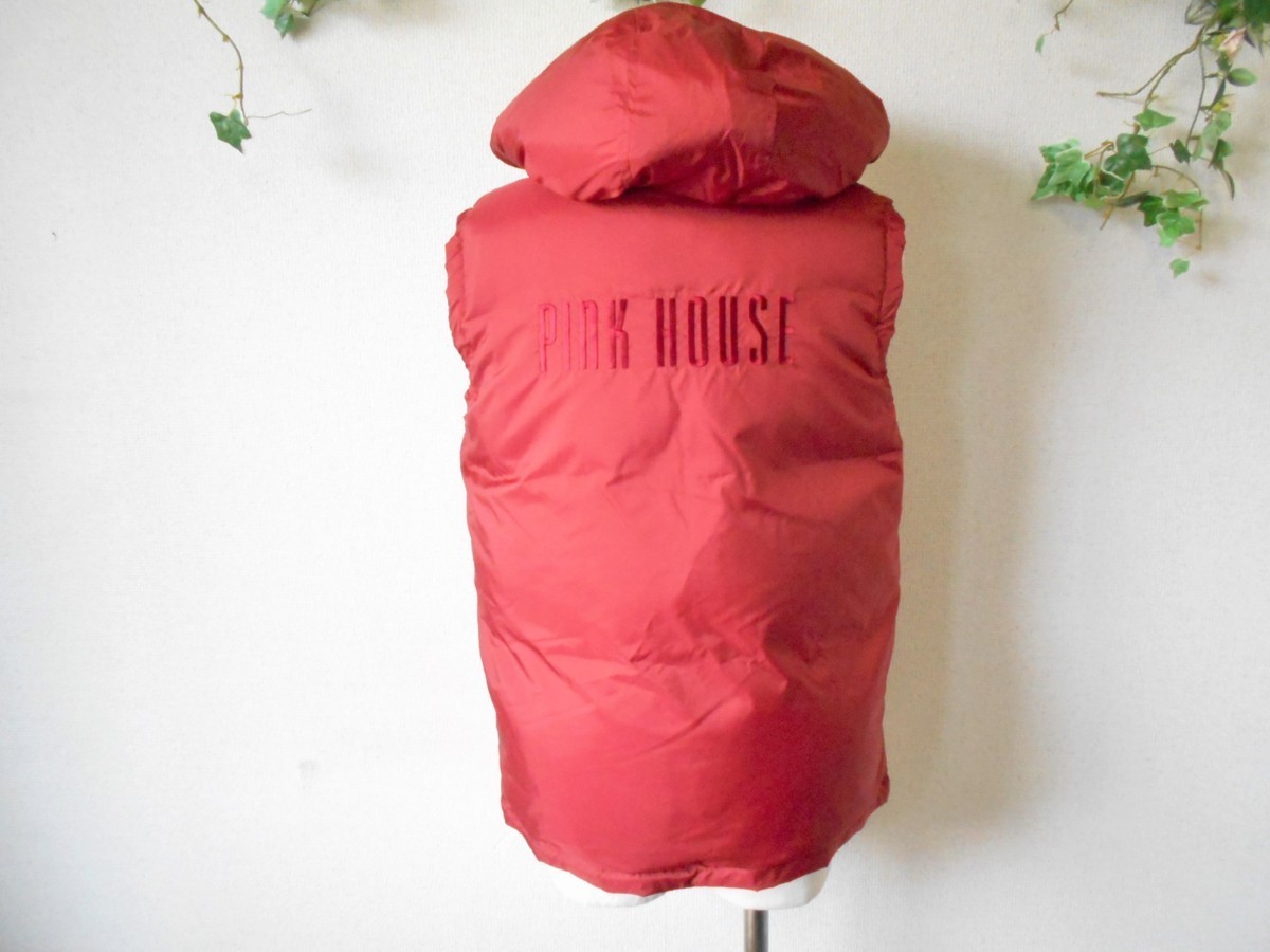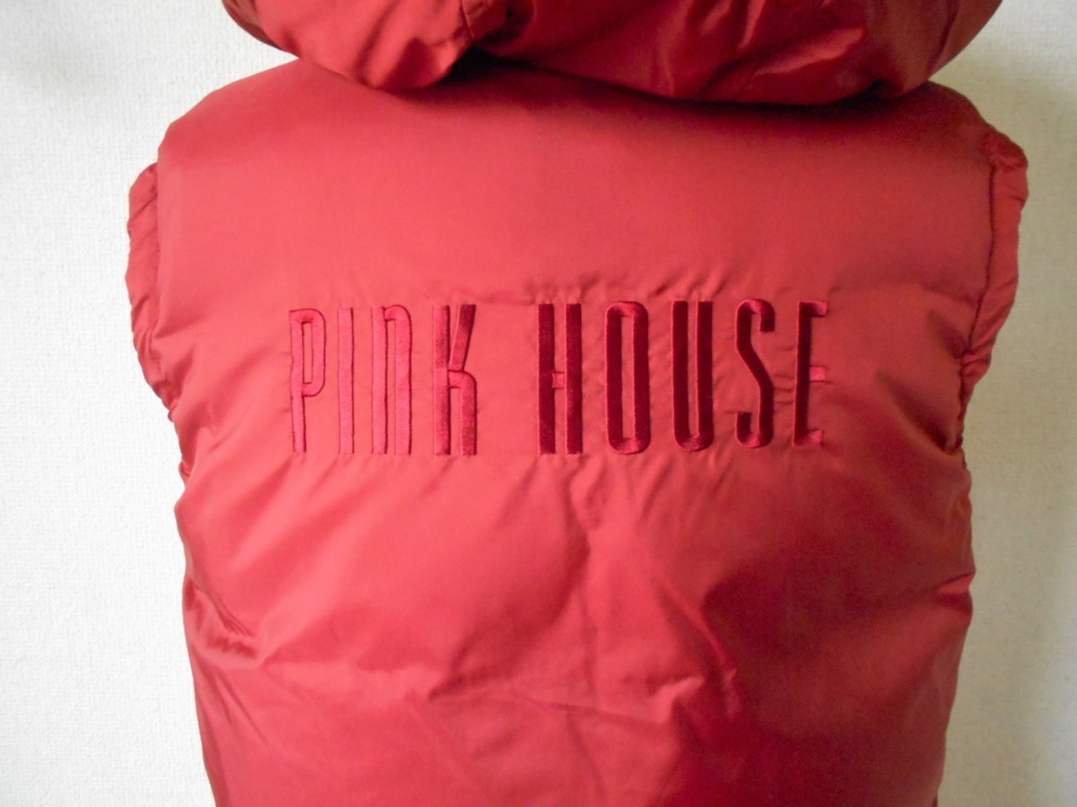 美品 ピンクハウス PINKHOUSE リバーシブル ロゴ 刺繍 入り ジップアップ ダウン ベスト