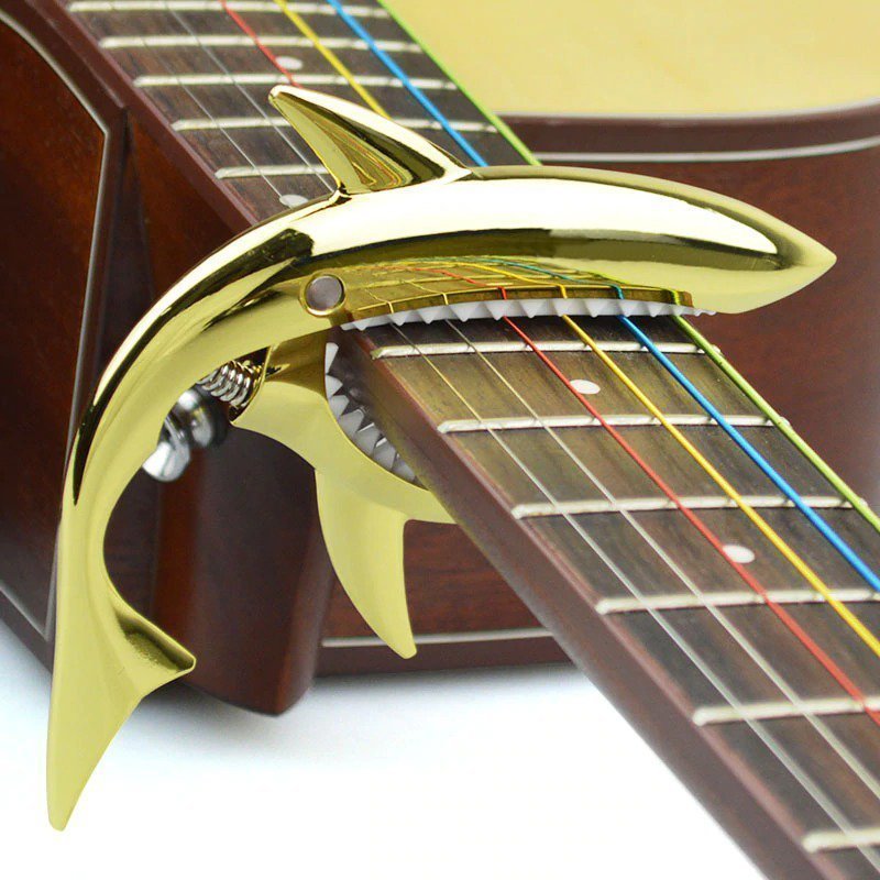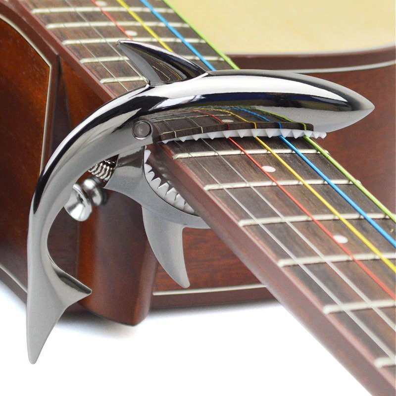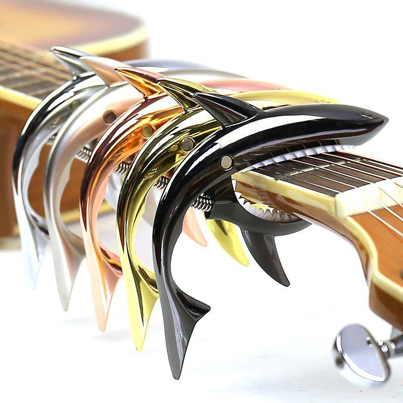 エレキギター・アコースティックギター・フォークギターなど6弦ギターに使用出来る、バネ式のカポタストです。片手で装着可能なバネ式。装着時にチューニングも狂いませんし、弦もしっかり固定します。取り扱いがシンプルなので即座に脱着や音程変更が可能です。カポタストがあると難しい曲も簡単コードで弾けちゃいますよ○商品についてシャークの斬新なデザインでしっかり固定と機能性を両立。フォークギター・エレキギター・アコースティックギターのいずれにも使えるカポタストです。曲や気分に合わせてピッキングストローク、フィンガー、アルペジオと演奏の幅が広がります。■■■カラーについて■■■カラーの種類1枚目の写真でのご用意です。■■■出品物■■■・カポタストx1個※添付写真には、参考に沢山のカラーを添付してますが、出品は1個ずつとなります。■■■外装状態■■■※本製品は輸入品の為、多少の汚れ、スレ、保管上に出来る傷などある場合がございます。予めご了承ください。注意:モニター発色の具合により、実際の色味と異なる場合がございます。
