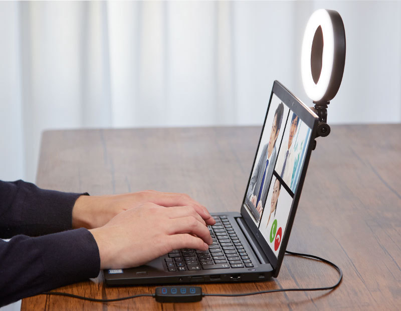 ビデオ会議の時は周囲の明るさに応じた柔らかい光を、料理や商品の撮影の時には明るさを最大化するなど10段階で光の強さを調整できるため様々なシーンで利用できます。
