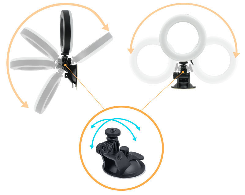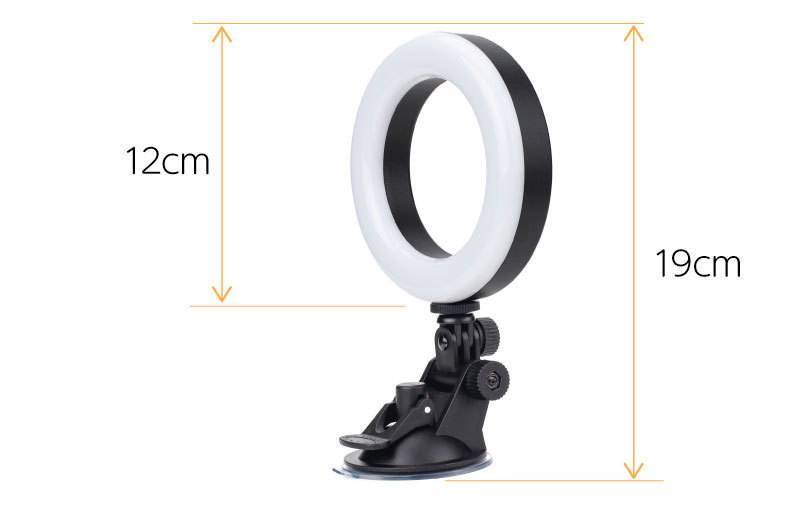 ノートパソコンの天板部分に付属の吸盤を取り付けることでリング型LEDライトを固定できるので、三脚などのスタンドを使うことなく照明環境を改善することが可能になります。