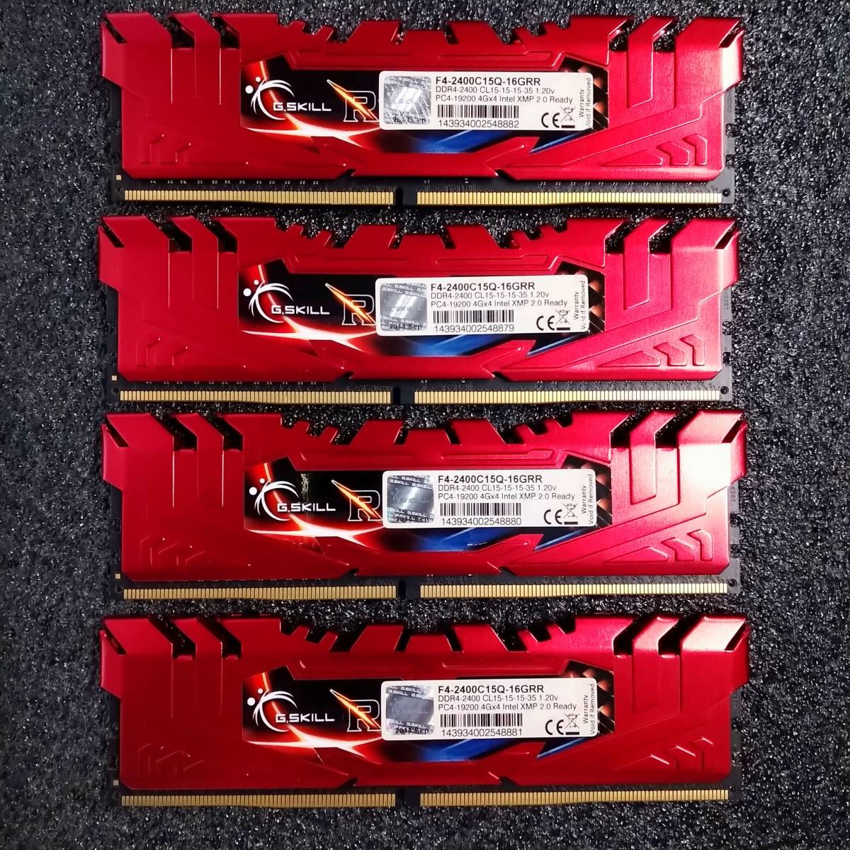 【中古】DDR4メモリ 16GB(4GBx4) G.SKILL F4-2400C15Q-16GRR [DDR4-2400 PC4-19200]