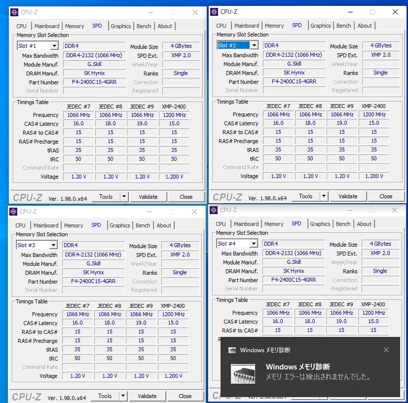 こちらのDDR4メモリ、4GB4枚組合計16GBのセットです。