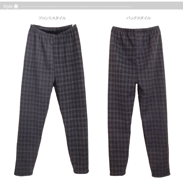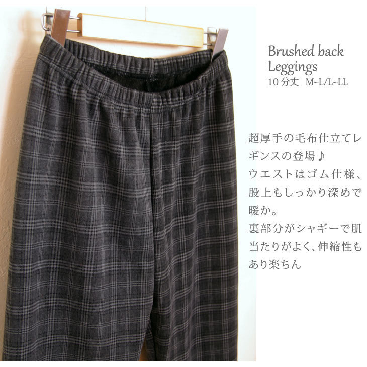 M-L チェック柄グレー レギンス 超厚地 レディース 毛布仕立て 裏シャギー 裏起毛 スパッツ リラックス 10分丈 新品