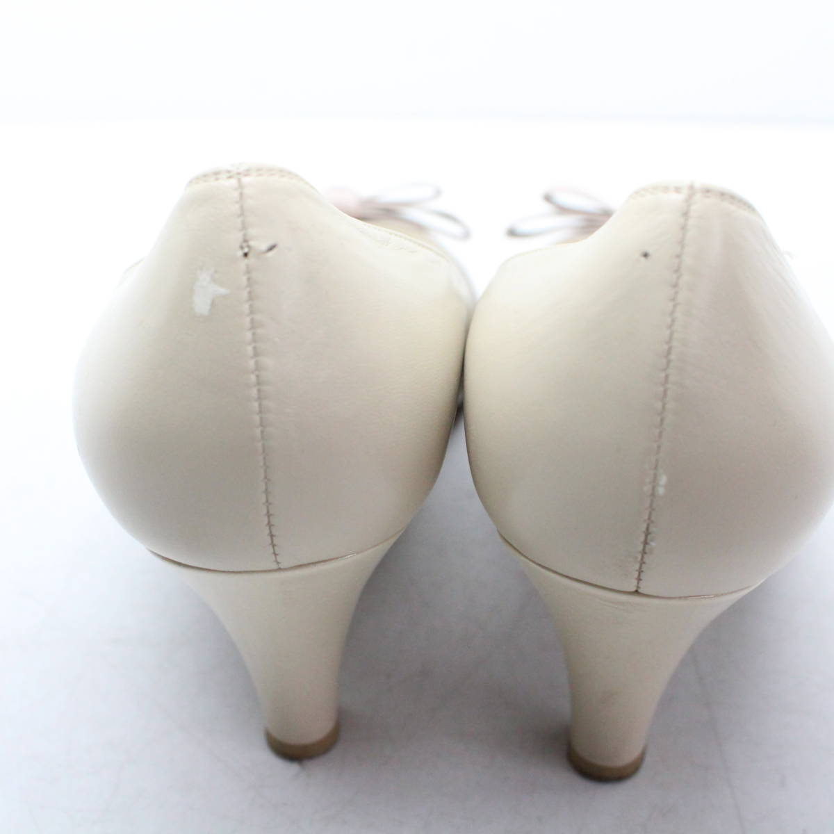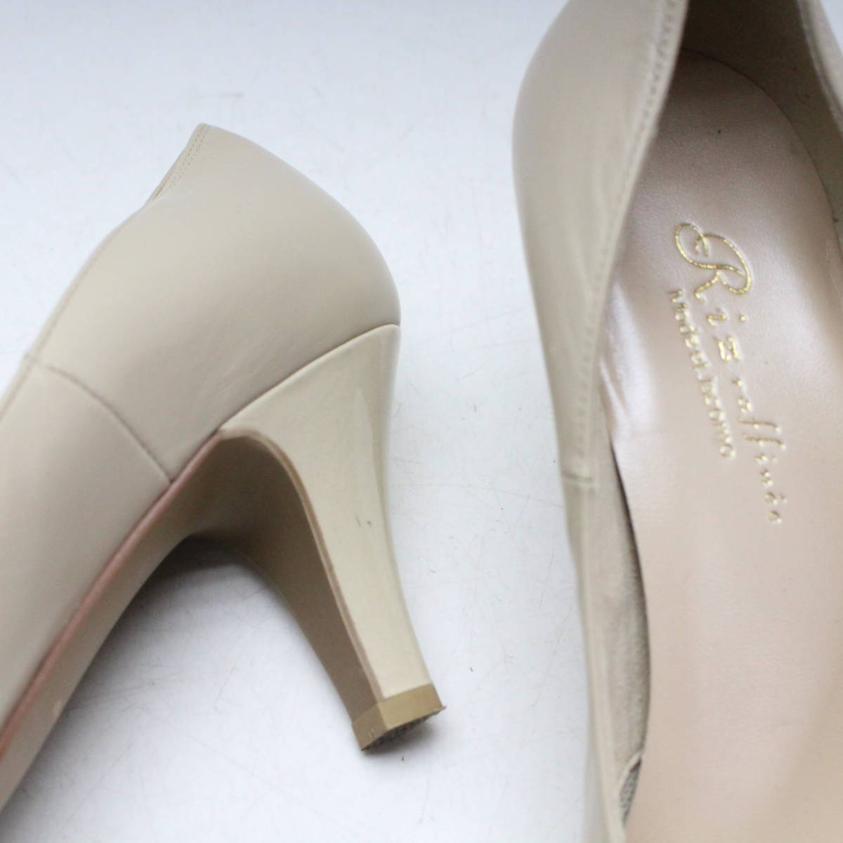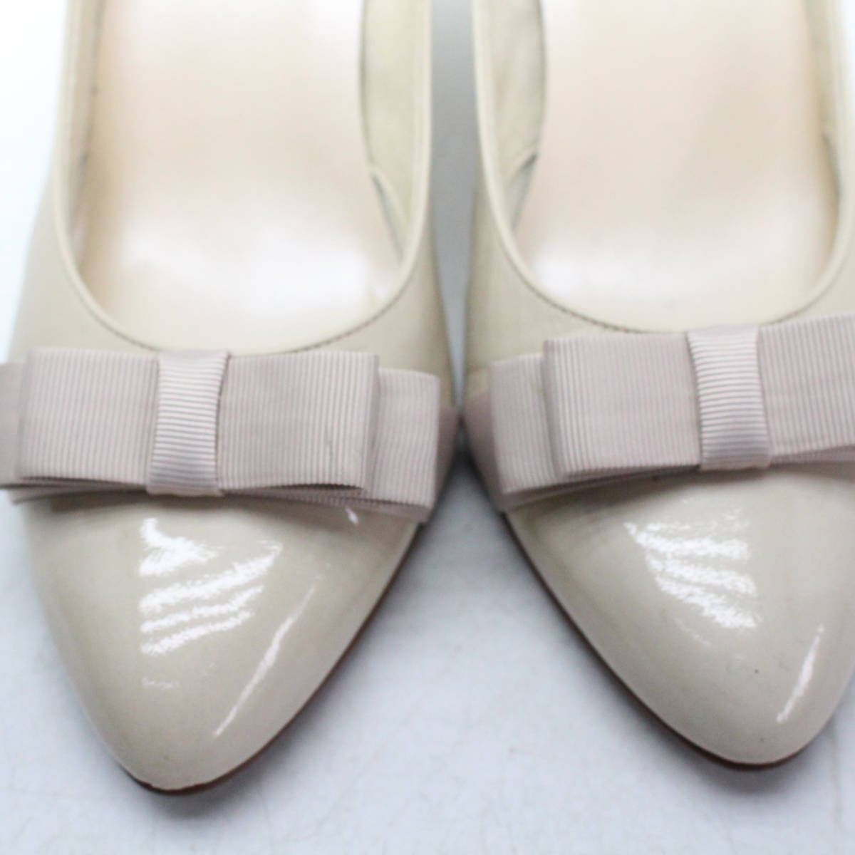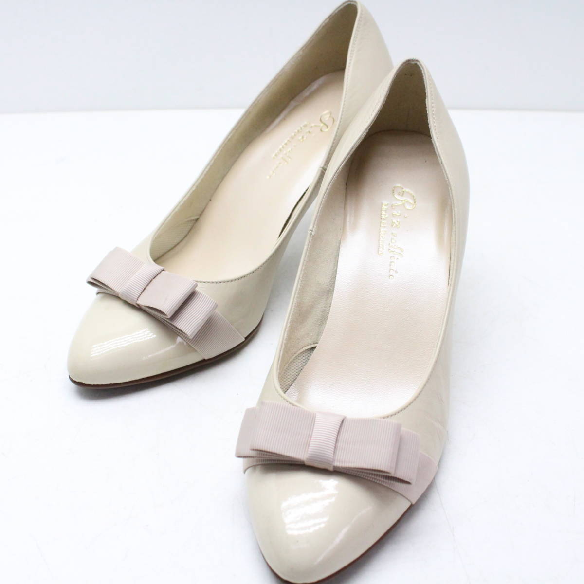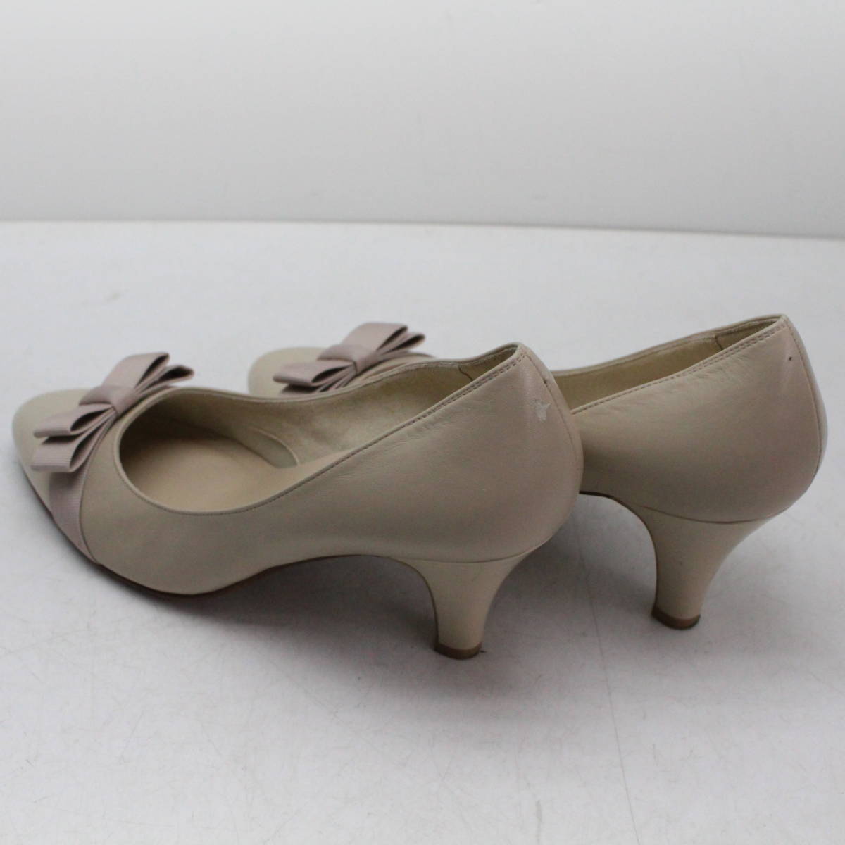 | 美品 Riz raffinee 本革りぼんパンプス 23(2E)ベージュ/B72 | ||||