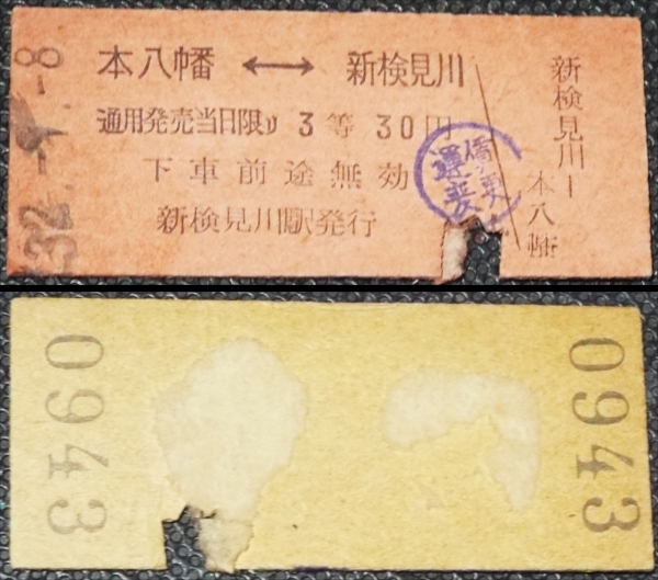 179☆☆硬券・乗車券・本八幡⇔新検見川・3等30円・昭和32年☆