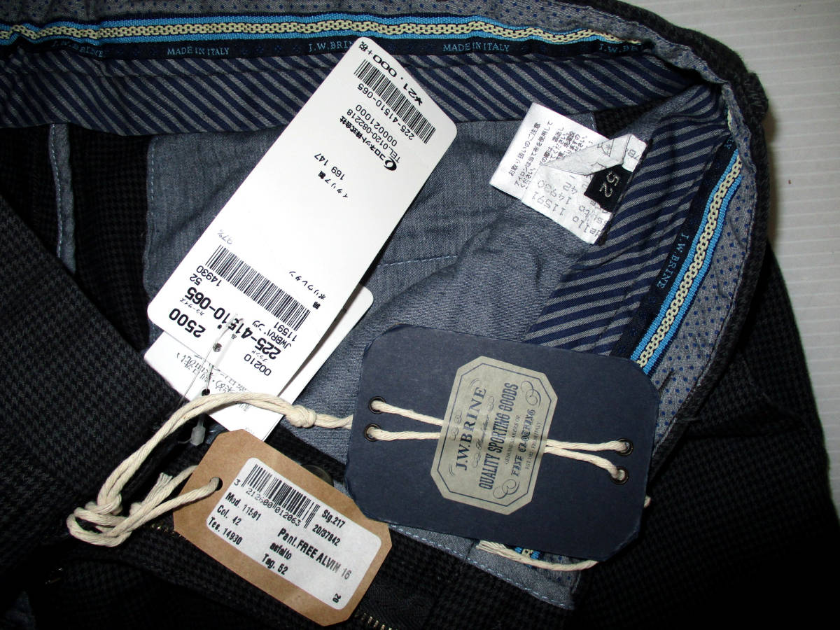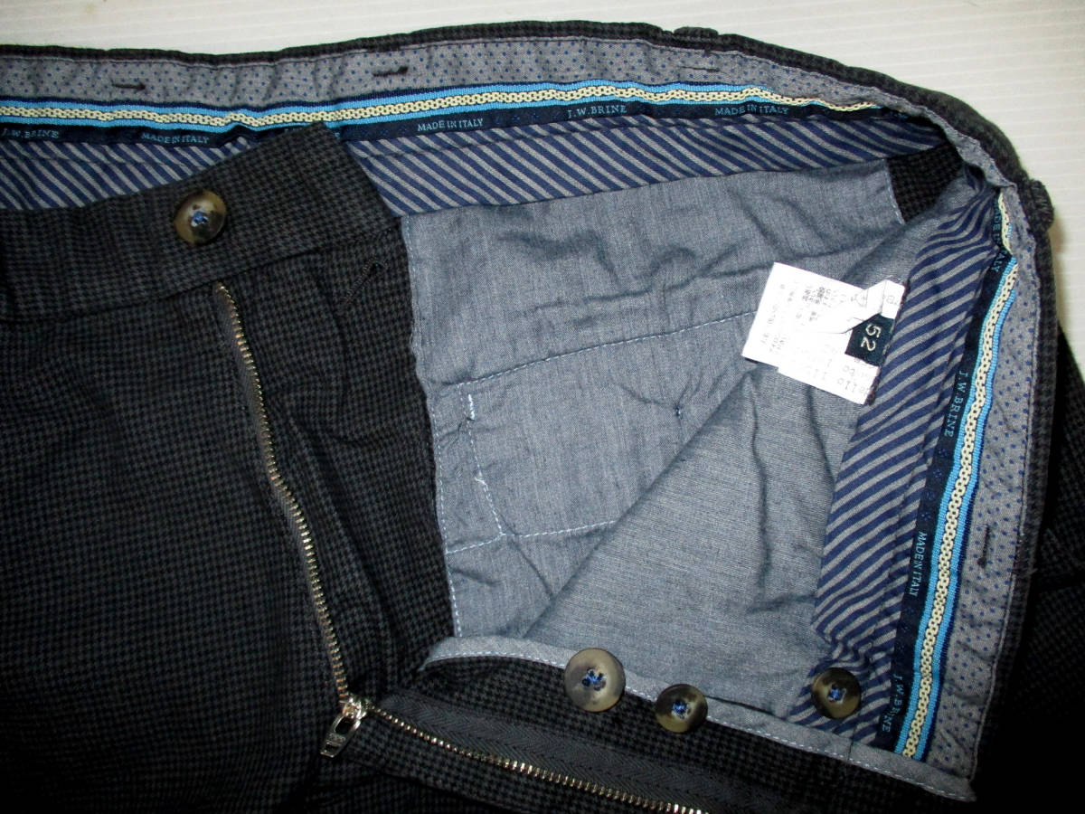未使用★イタリア製 ジェイダブリューブライン J.W.BRINE コットンパンツ スラックス サイズ52 です。コロネット株式会社 イタリア製の正規品です。素材は 綿97、ポリウレタン3です。色はグレー×黒だと思います。 千鳥格子柄です。