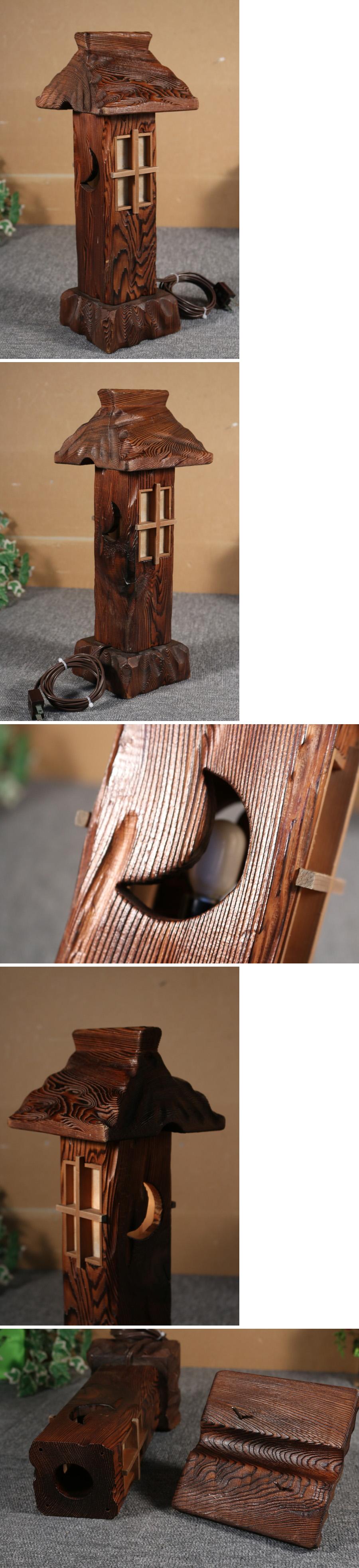 テーブルライト 木製かやぶき屋根 照明 動作保証 付属:本体のみ 外寸:高395×横150×奥150mm