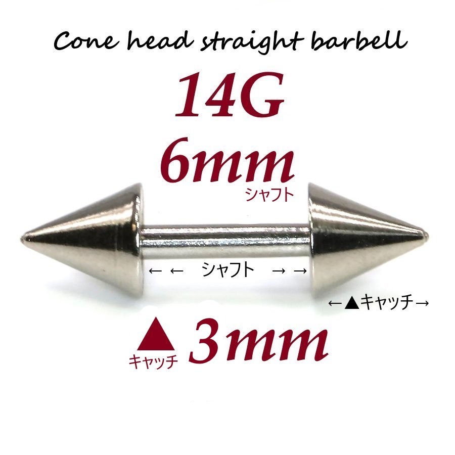 *【 14G シャフト6㎜ キャッチ3㎜ 】 【2個セット】 ▲ コーンヘッド ストレートバーベル ピアス