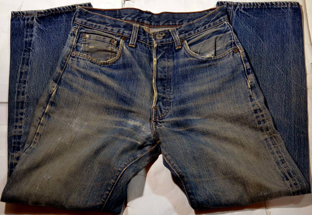 501ビッグEです。復刻、レプリカではありません。『ディテール紹介』フロントトップボタン裏の刻印8、フロントポケット、コインポケット、ベルトループ、ボタンフライ、 裾にイエロー綿糸が使用されています。『状態』リペア=右ヒザ・モモ(左ヒザは当て布補強のみ)、股、、左フロントポケット、左後ポケ付け根(ボンドによる素人補強)、 ボタンホール3つ補強。その他=スレ、キズ、ステッチのほつれ・補強などUSED感があります。『色落ち、特徴など』色落ちは抜群にかっこよく、 ビッグE特有の非常に深みのあるインディゴで、全体に綺麗な縦落ちが見られます。激しいヒゲが入り、濃淡のメリハリも綺麗に出ております。 サイド赤耳も綺麗に開き、キャタピラ状のアタリがクッキリと出ています。中々ここまでの色落ちは見られません。トップレベルのビッグEだと思います。