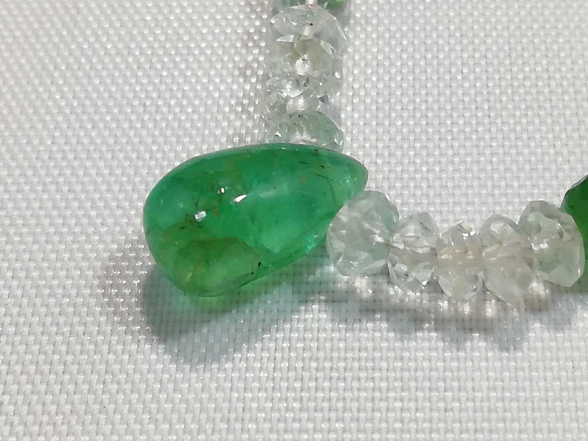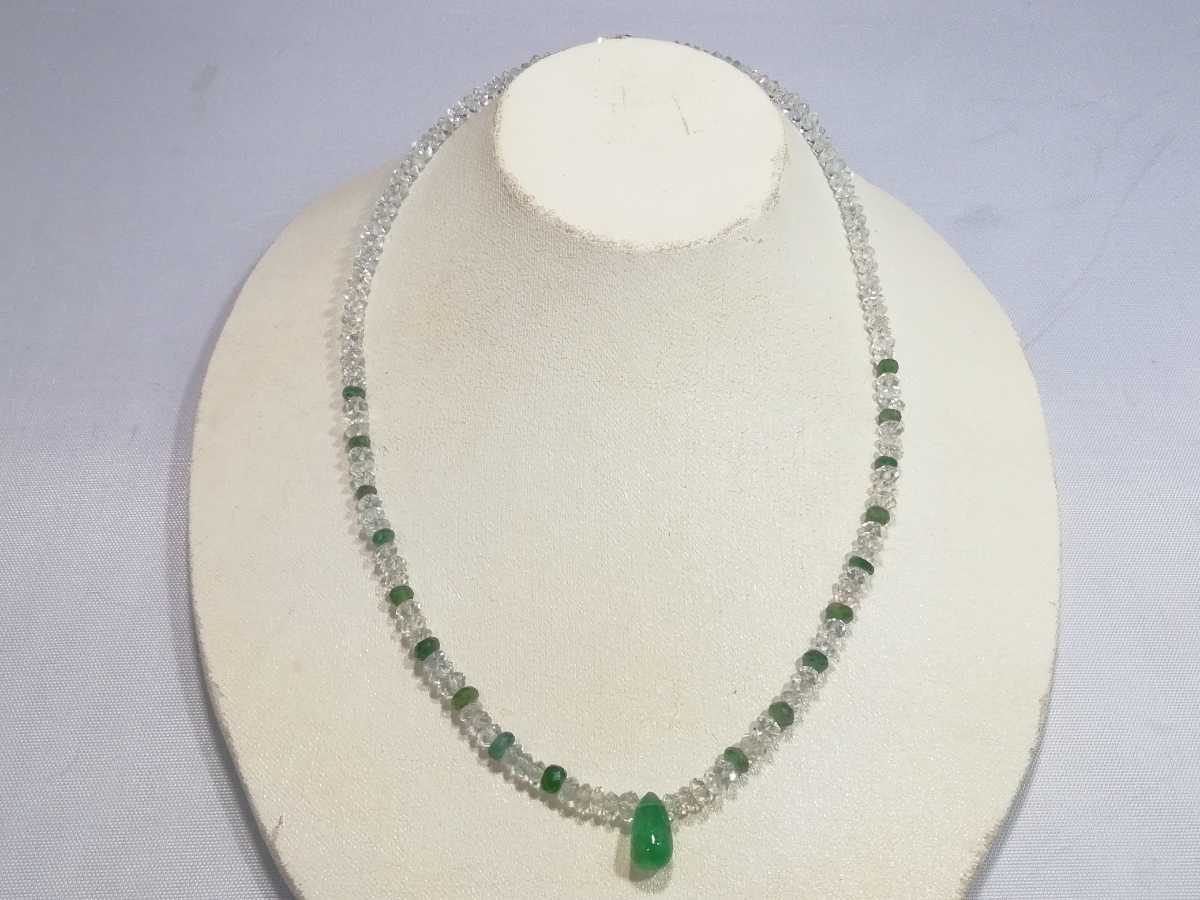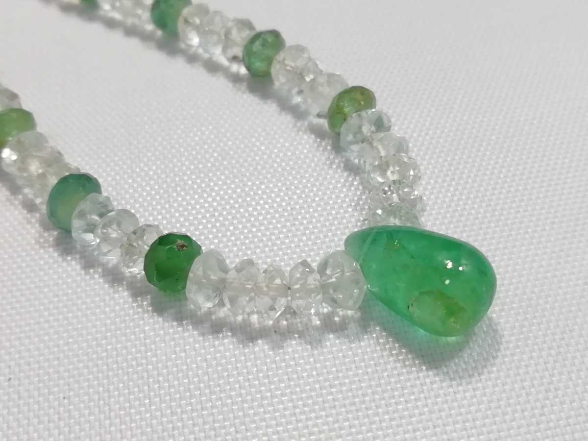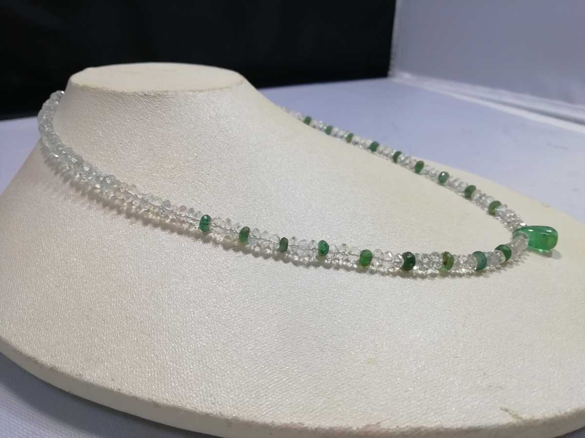 天然ダイアカットアクアマリン&天然エメラルドワンポイントエメラルドペンダントコンビネックレス