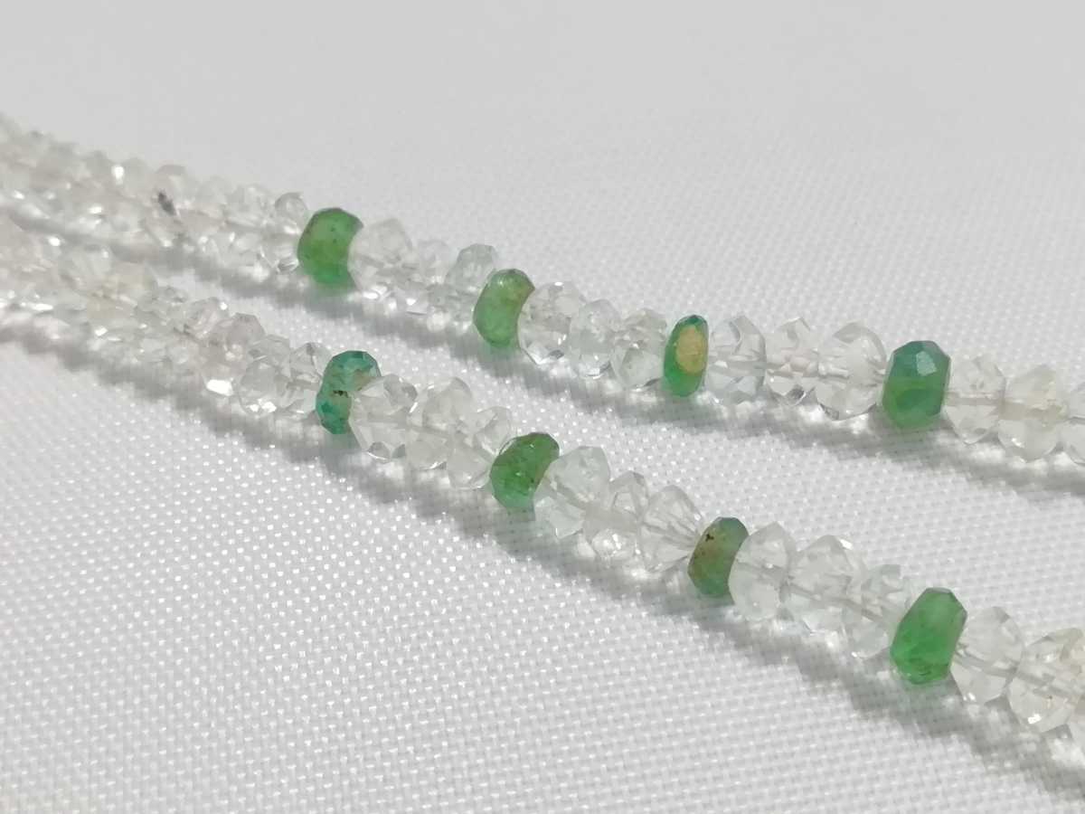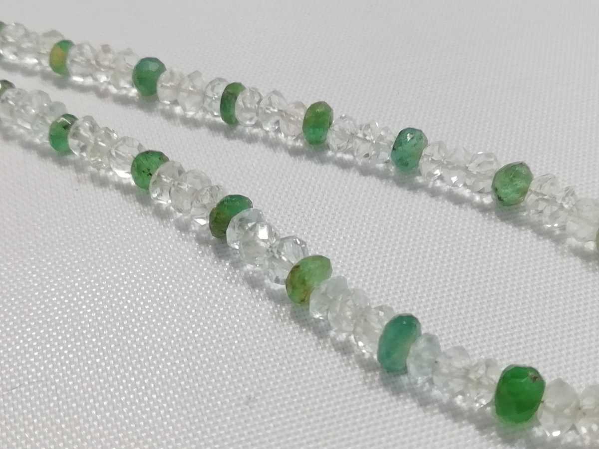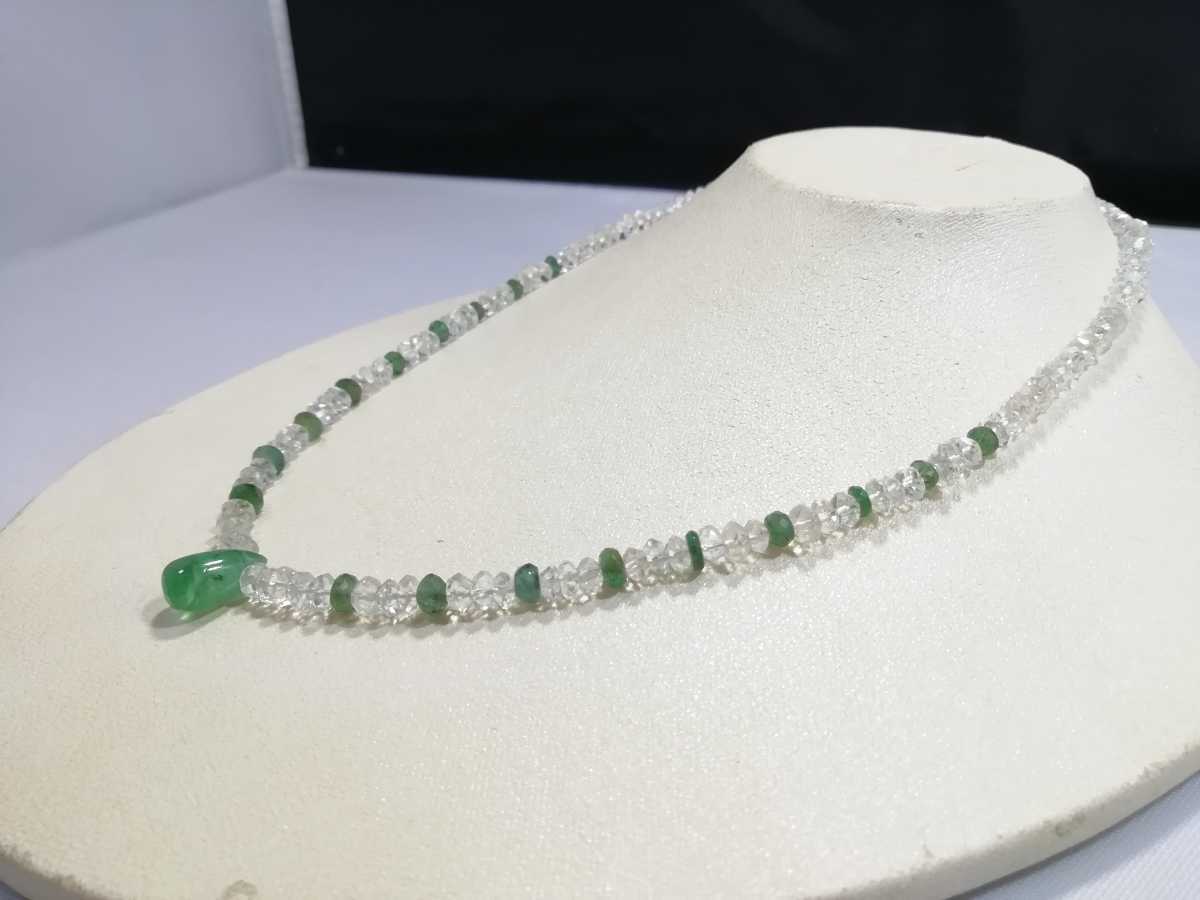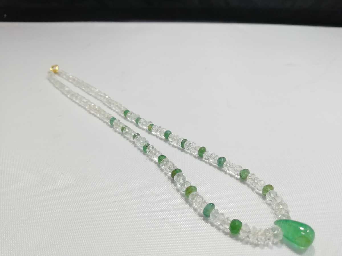 天然ダイアカットアクアマリン&天然エメラルドワンポイントエメラルドペンダントコンビネックレス