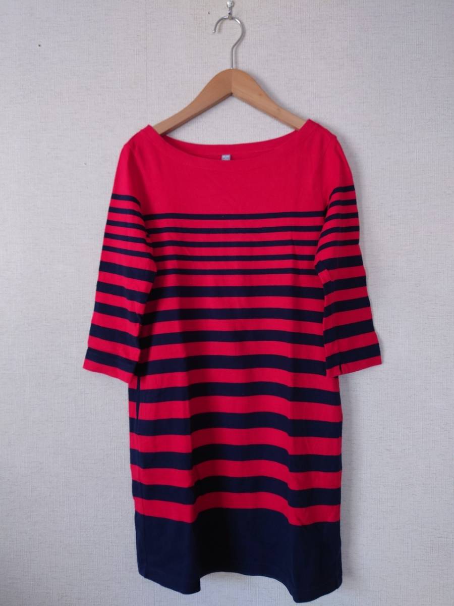 ユニクロ UNIQLO チュニックワンピース サイズМ コットン100% colorレッド×ネイビーボーダー柄  425-5D2630