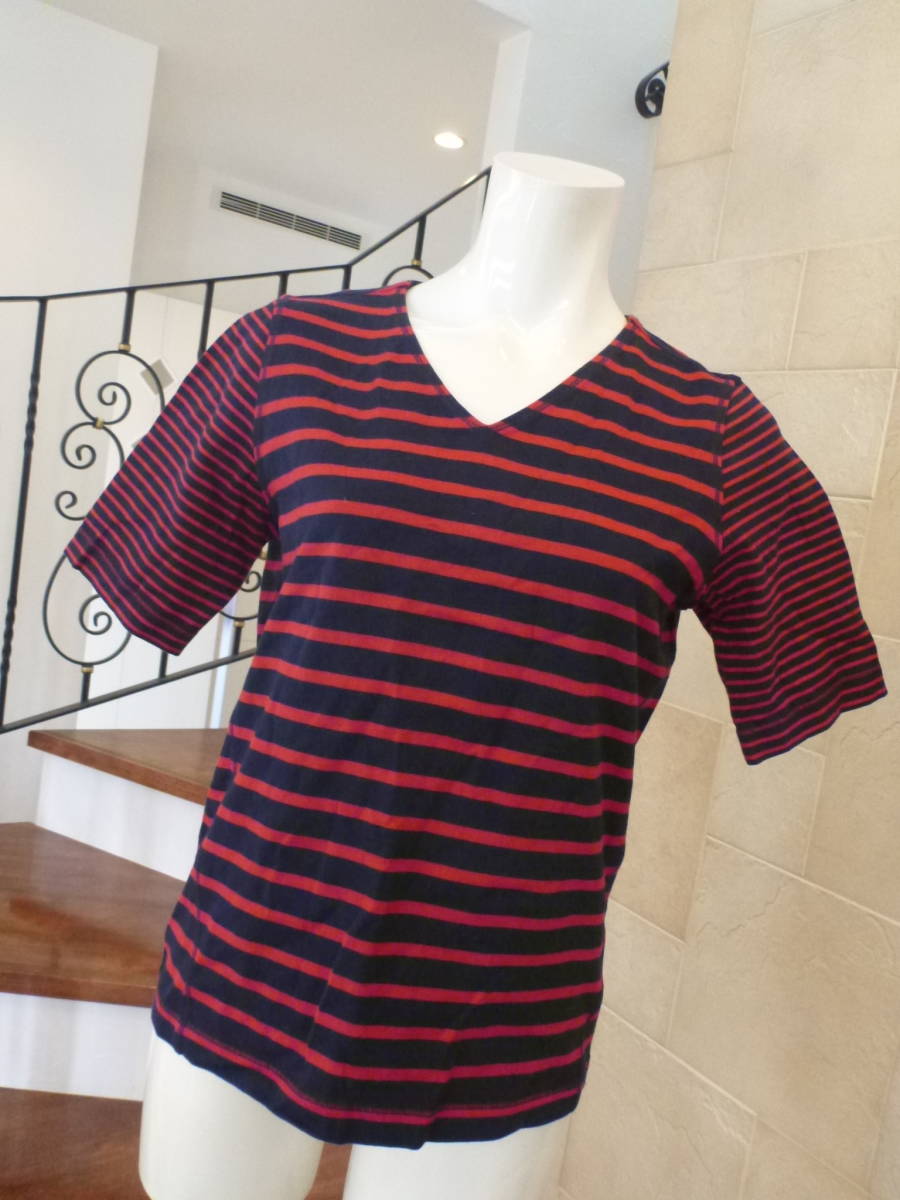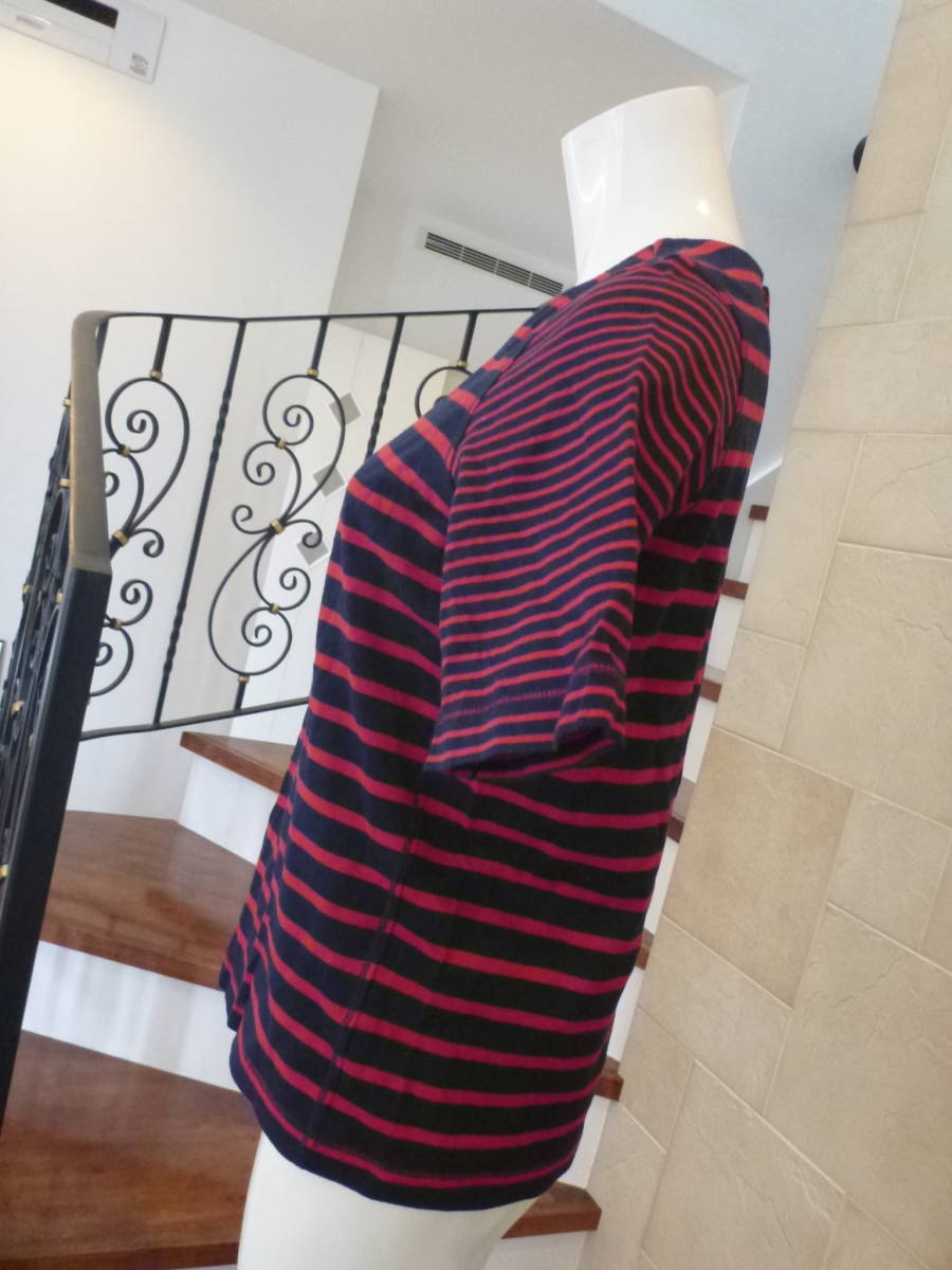 ◆紺×赤 ボーダー しっかり生地 半袖カットソー
