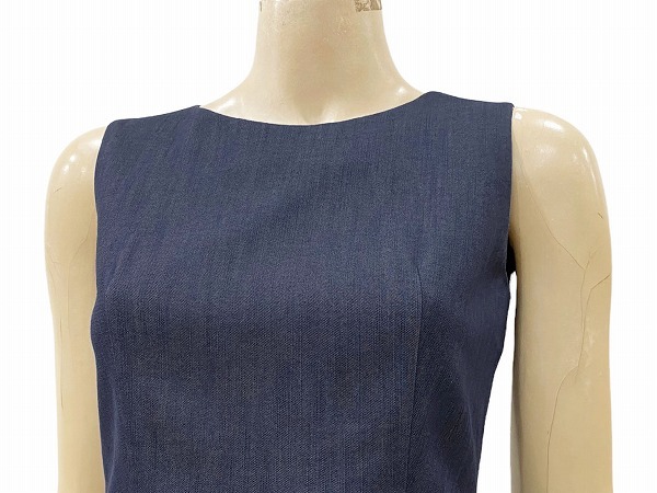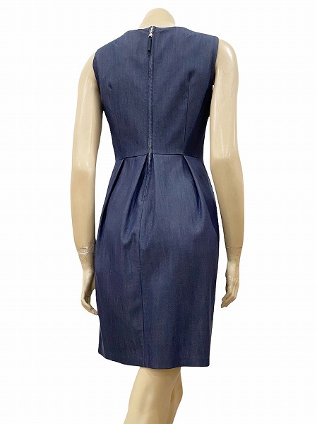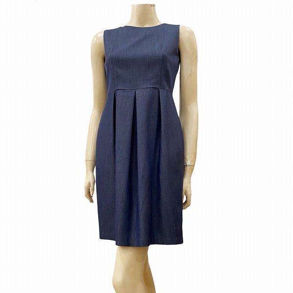 F新品同様☆Mプルミエ*M-PREMIER★青系★デニム生地★美シルエット*タック切替え★ノースリーブワンピース★36号(Sサイズ*7号)★レディース