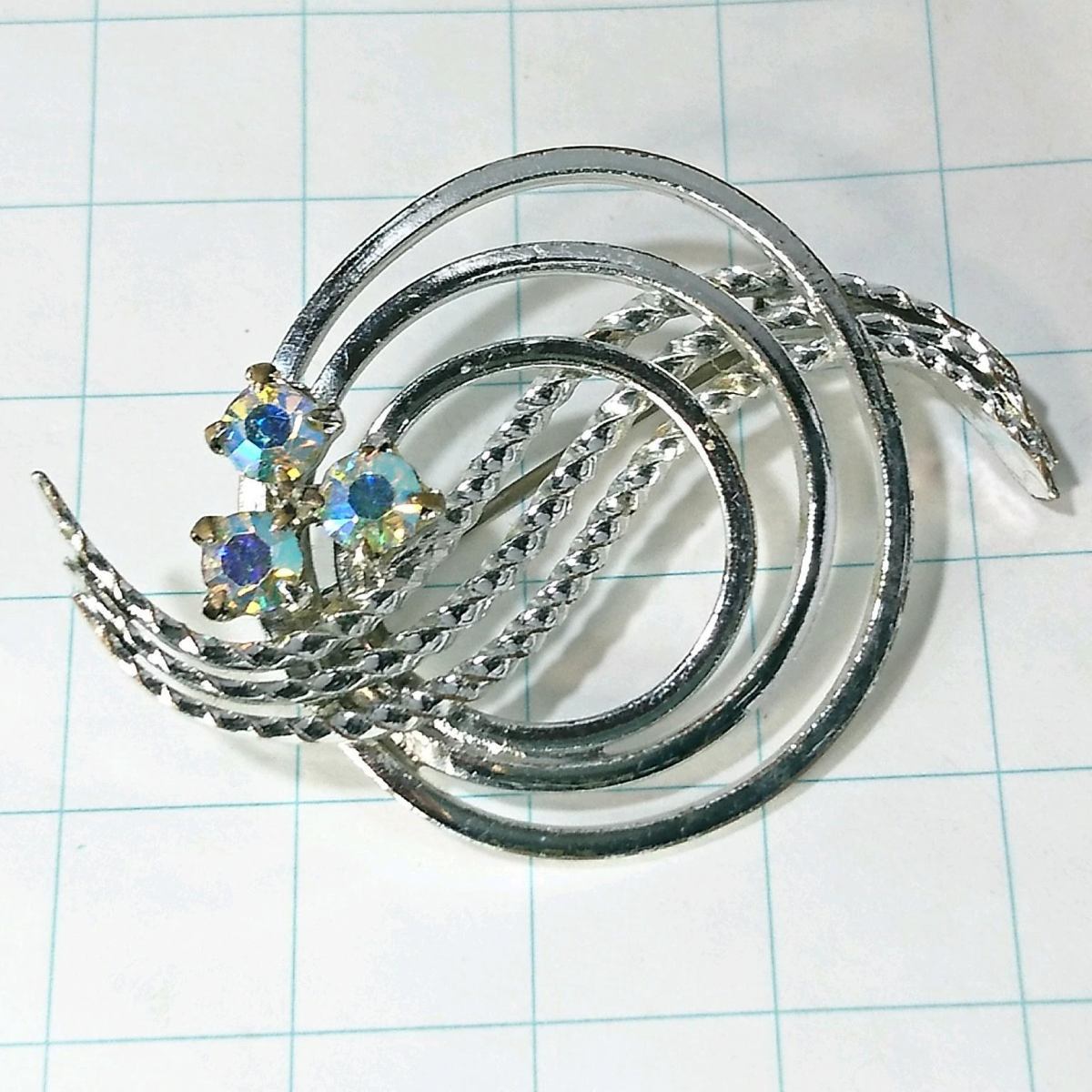 送料無料)ビンテージ☆ラインストーン ウェーブデザイン☆アンティークブローチ A08206