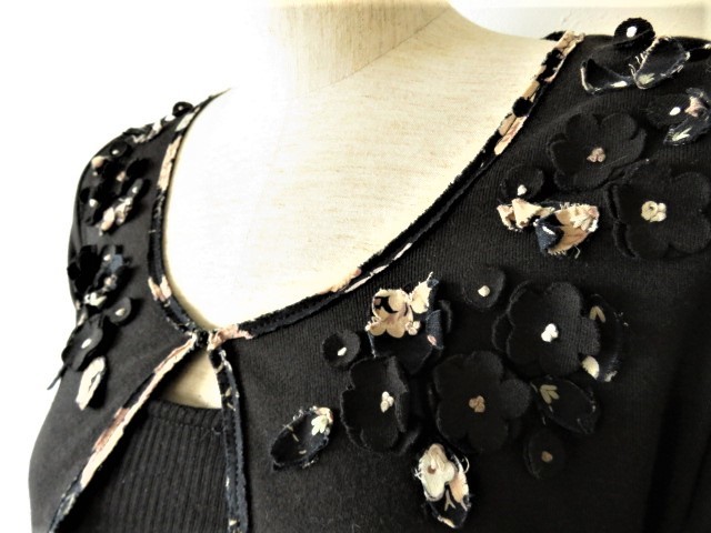 ■上質美品【 Laura Ashley ローラア シュレイ 高級 パッチワーク カーディガン 7号 S  黒 ブラック W761