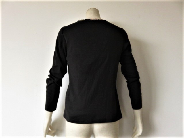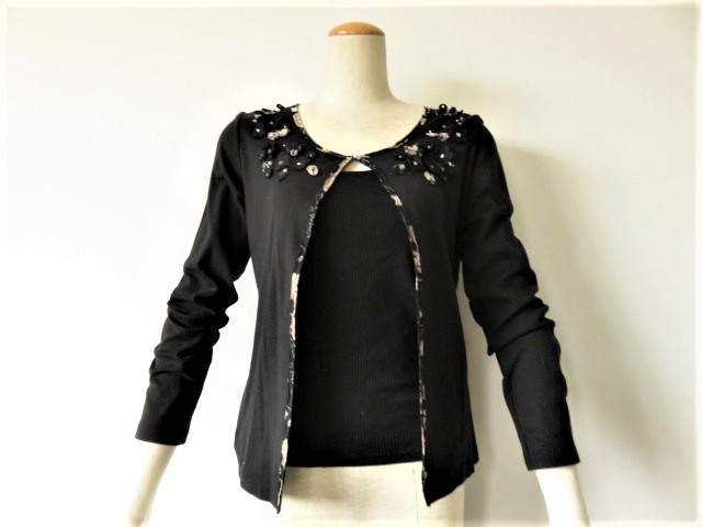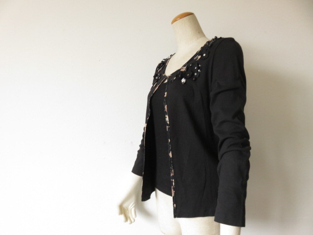 ■上質美品【 Laura Ashley 】ローラア シュレイ 高級 パッチワーク カーディガン 7号 S 送料185円 黒 ブラック W761