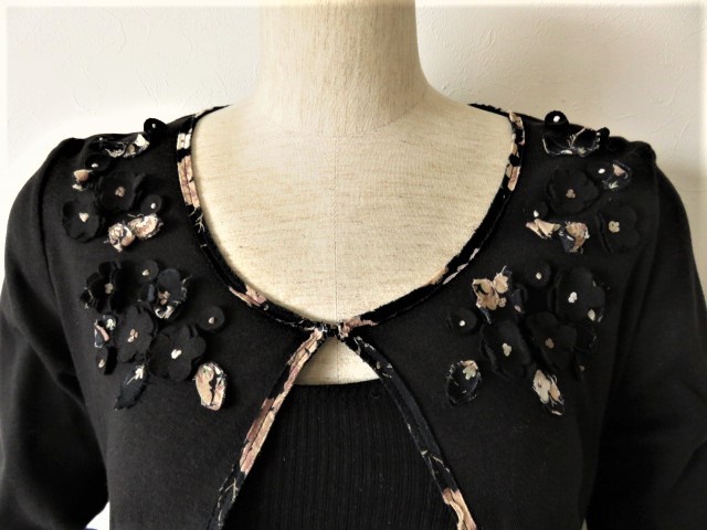 【 Laura Ashley ローラア シュレイの高級パッチワークカーディガン、お色は黒です。