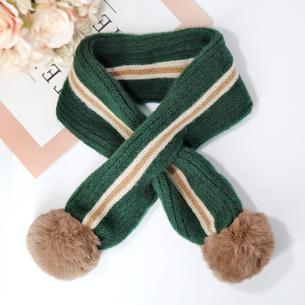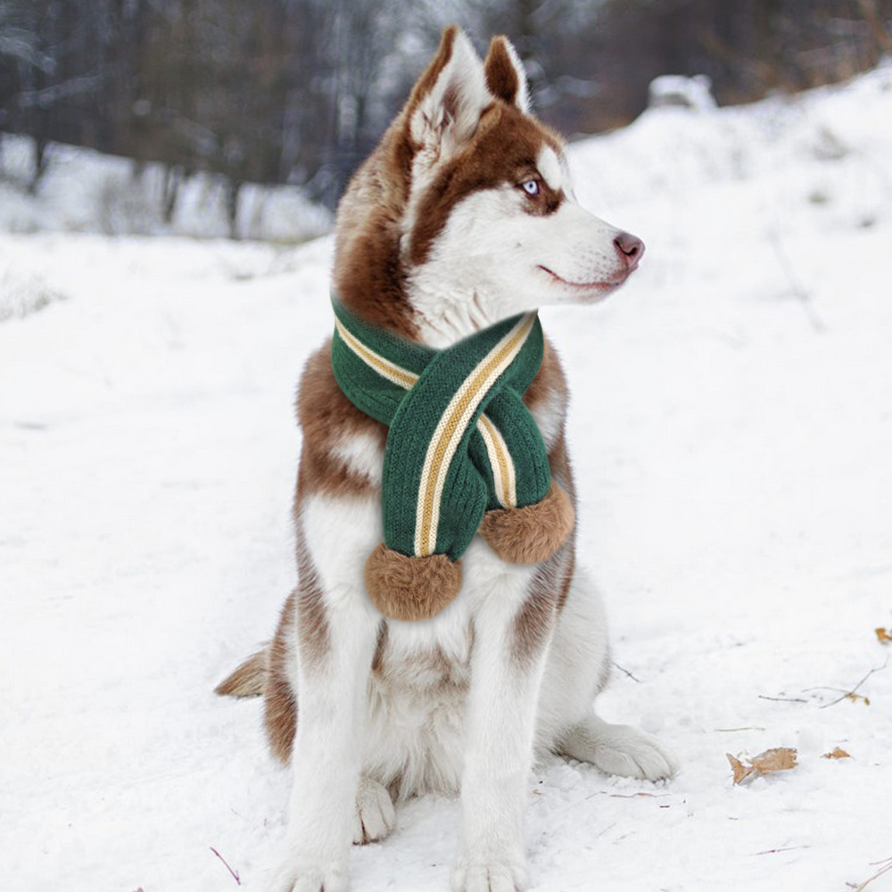 犬用 ポンポン付き マフラー ペット 毛糸 おしゃれアイテム スカーフ グリーン 緑