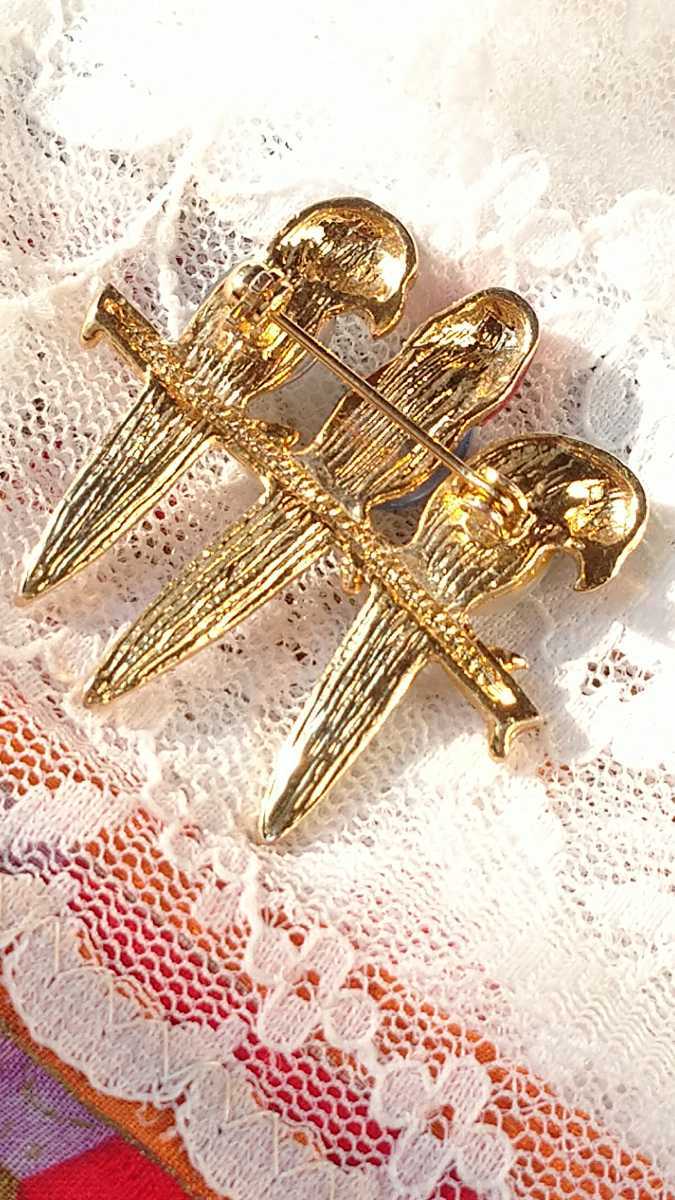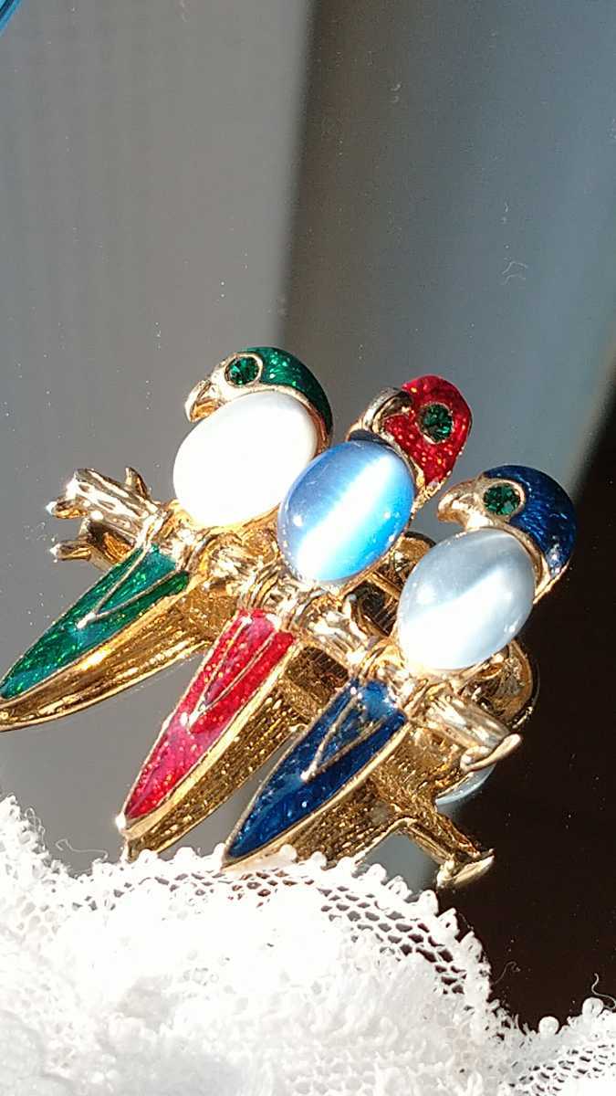 胸にはキャッツアイだと思います、角度によってキラキラ輝きが変わる石で飾られ、目にはグリーンカラーストーンが光ります。