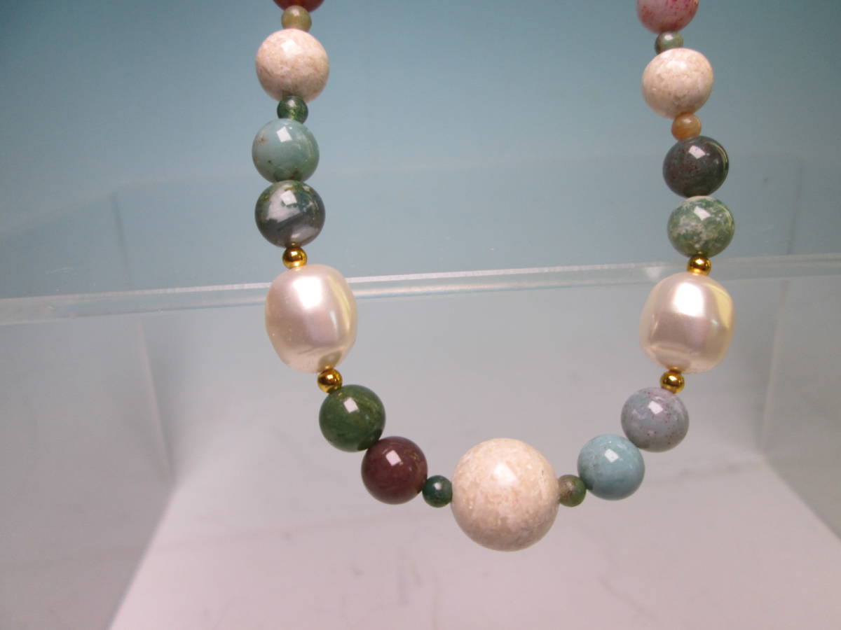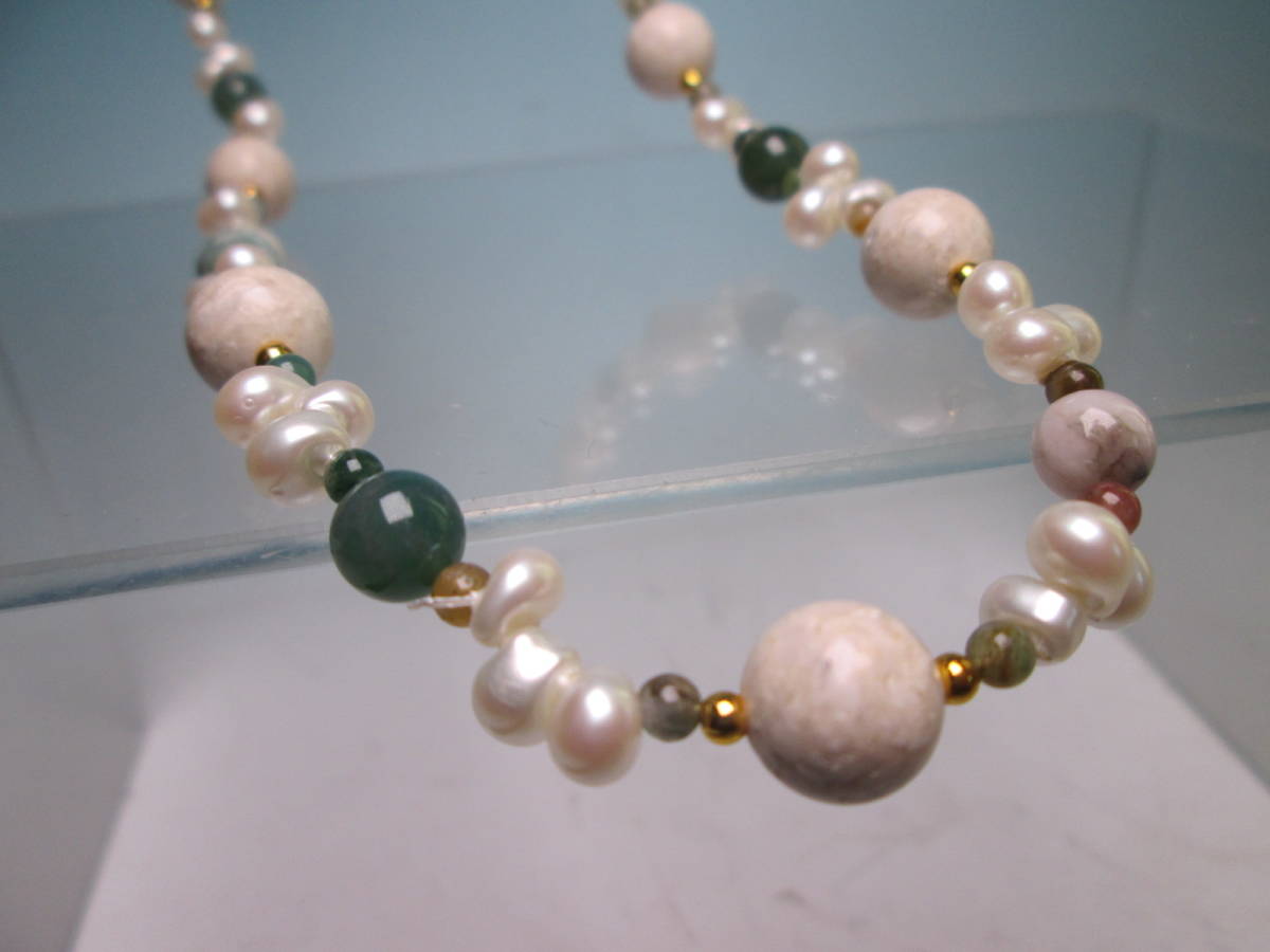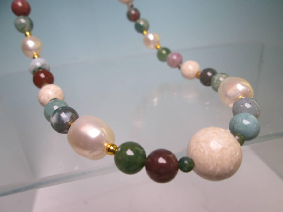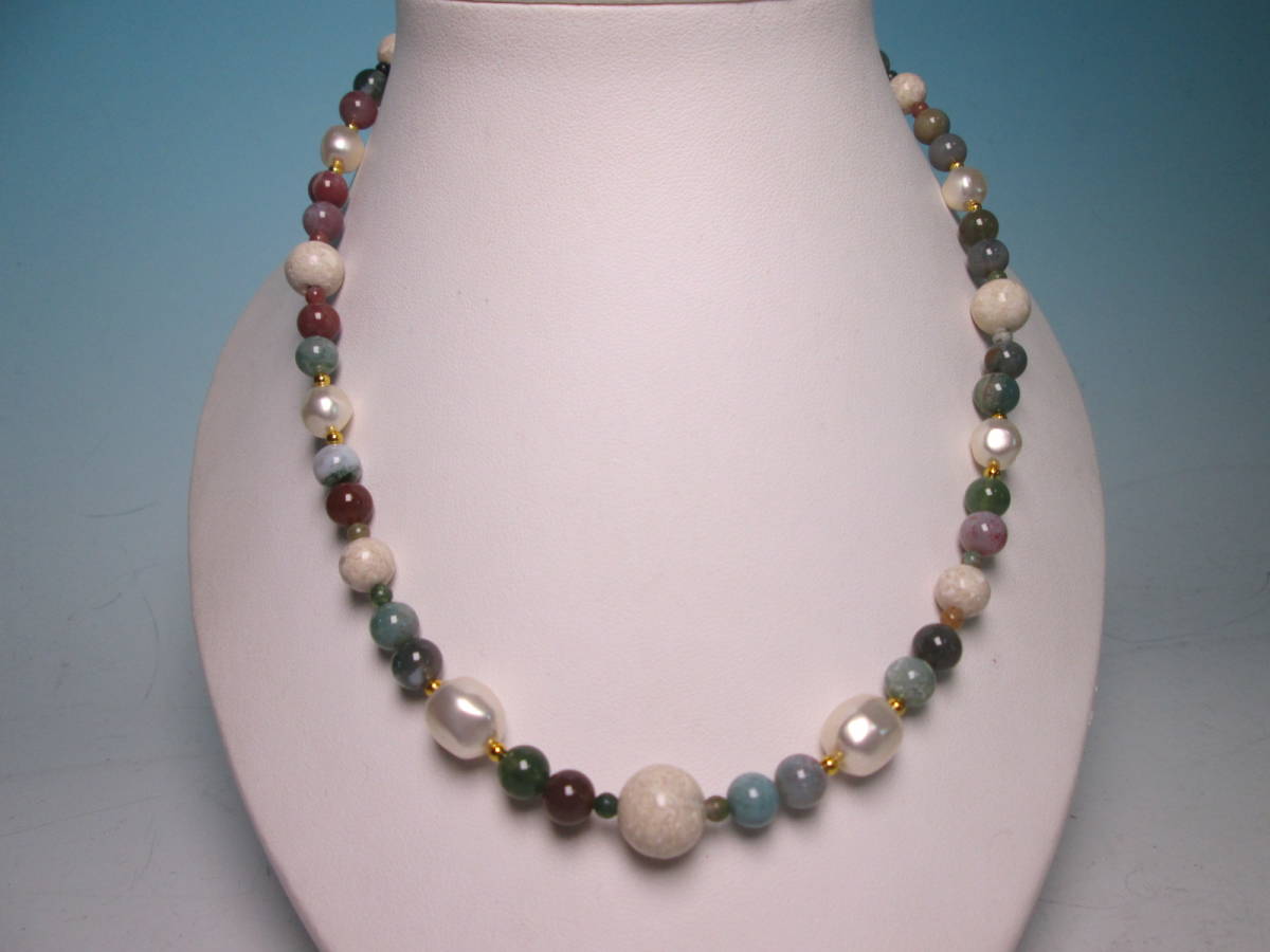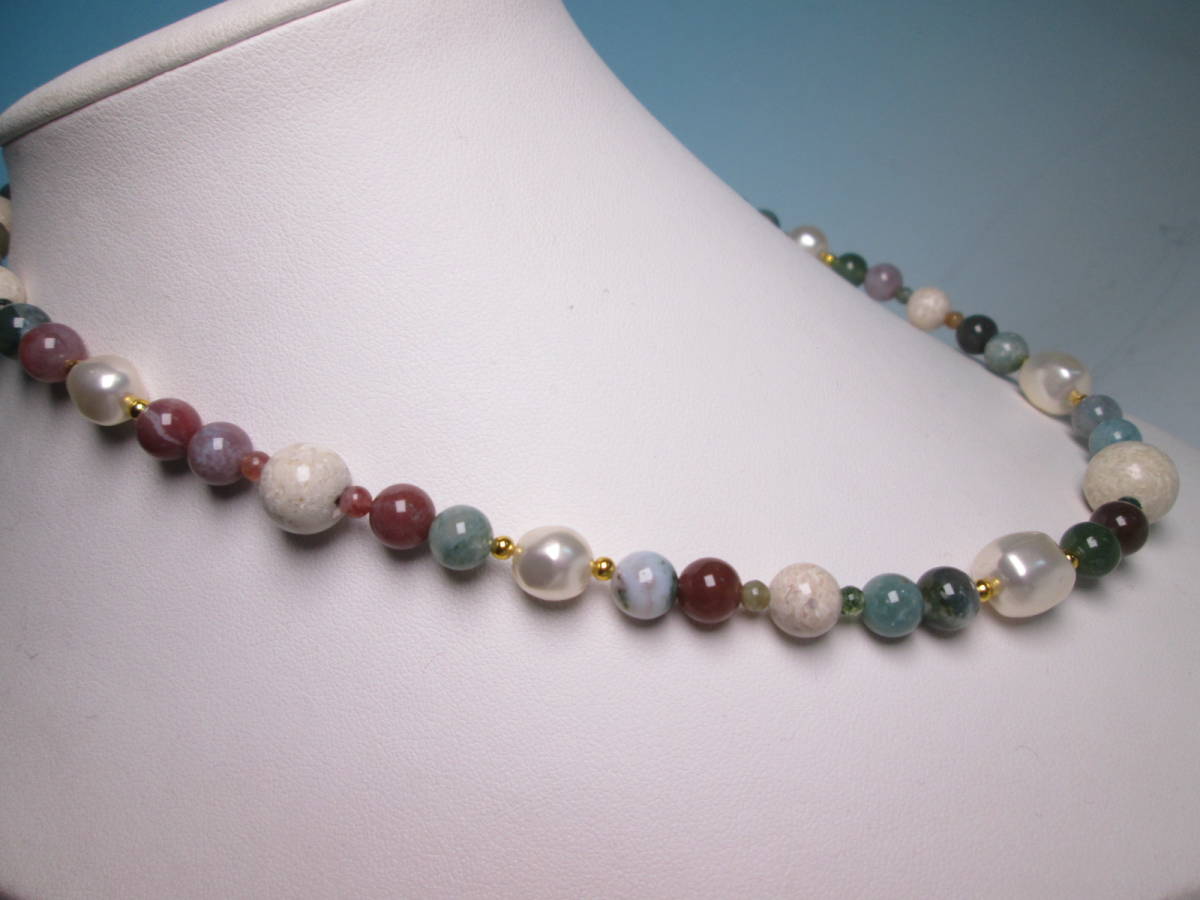 本瑪瑙&化石、樹脂玉のデザインネックレスです。