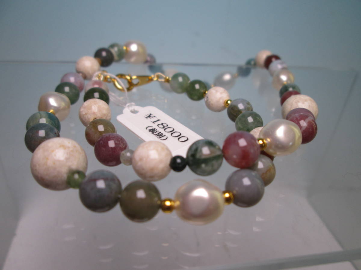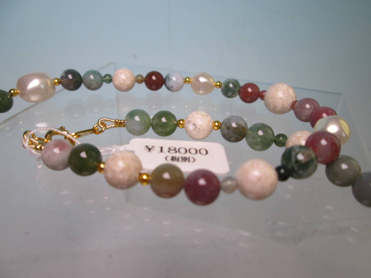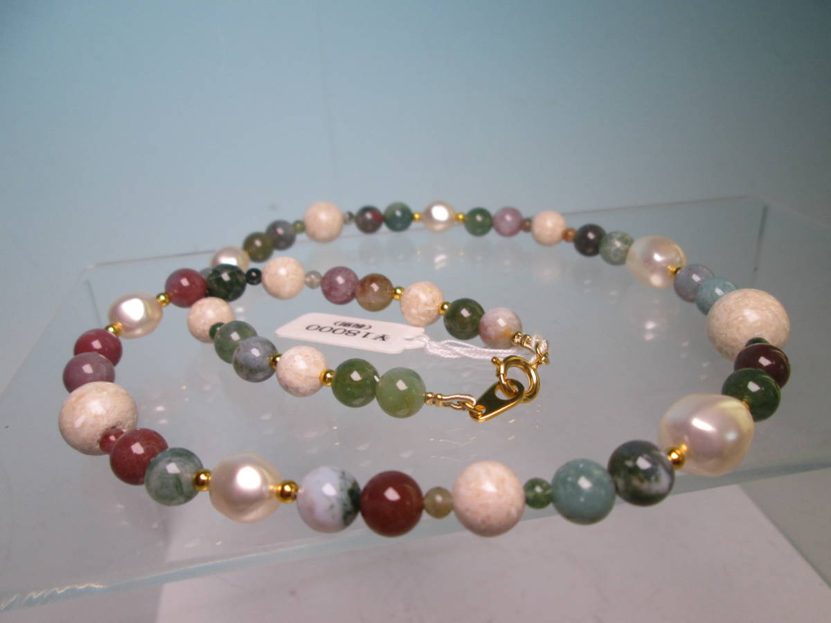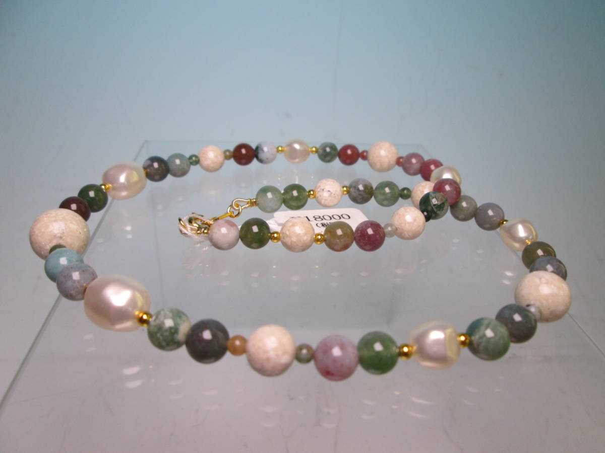 ☆本瑪瑙&化石&樹脂玉のデザインネックレス 28g 定価¥18000 新品