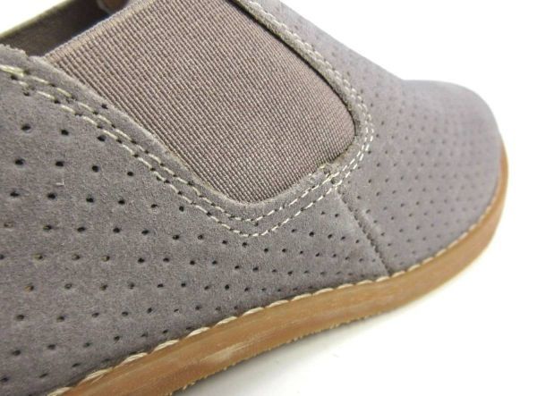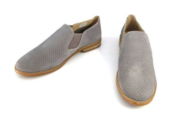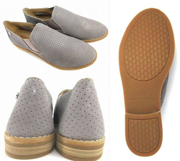 ハッシュパピー レディース 新品訳☆本革 フラットシューズ サイドゴアパンプス スリッポン スエード甲深 24cm グレー A1139☆HushPuppies