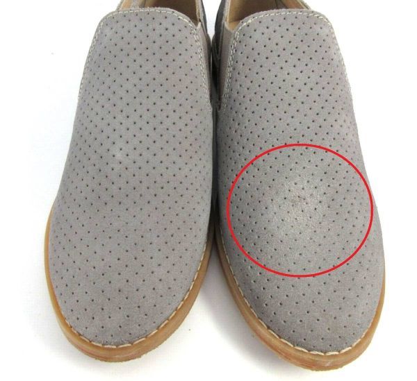 他にはインソール等を含め全体的に展示試足の際に付いたシワやわずかなスレ、ヨゴレ、糊跡や素材特有の毛羽立ち等のある訳あり品となります。ご了承の上のご落札をお願いします。
