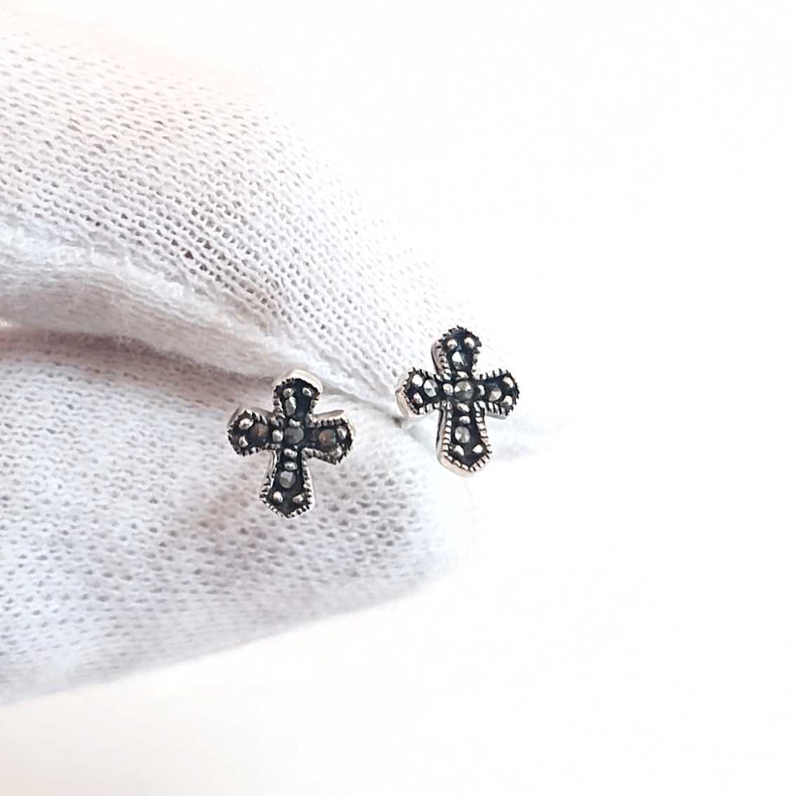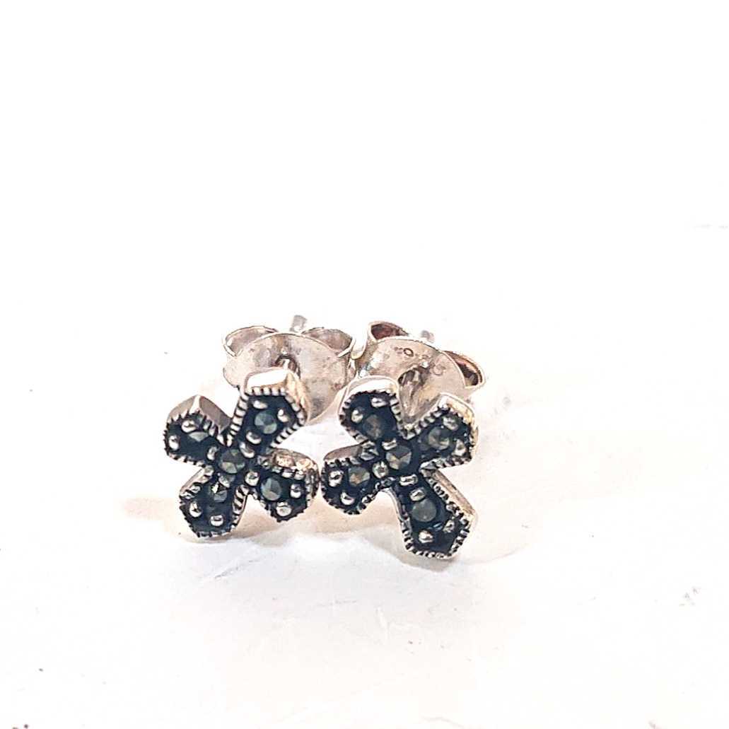 小粒のマーカサイト石を5石並べたアンティーク調のデザインがとっても素敵なピアスです☆