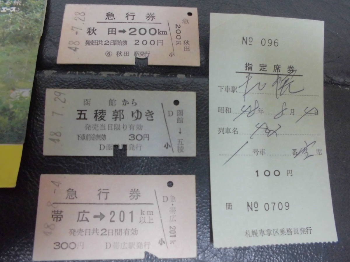 昭和48年の JNR 国鉄 「急行券2枚&乗車券1枚&指定席券1枚」です。