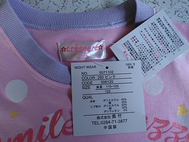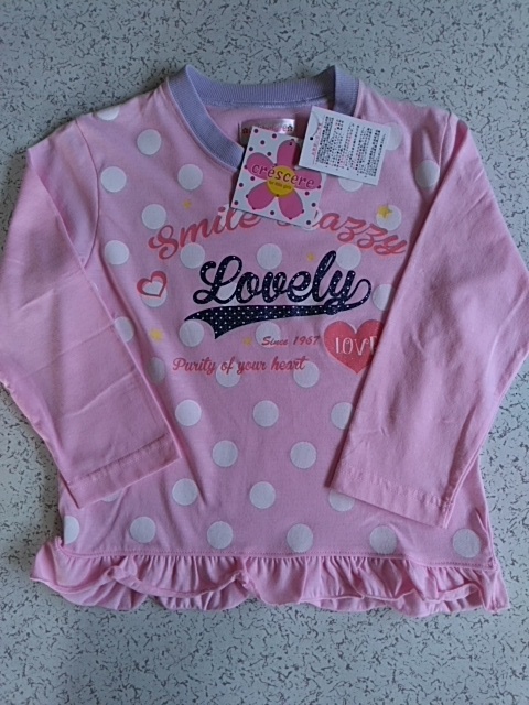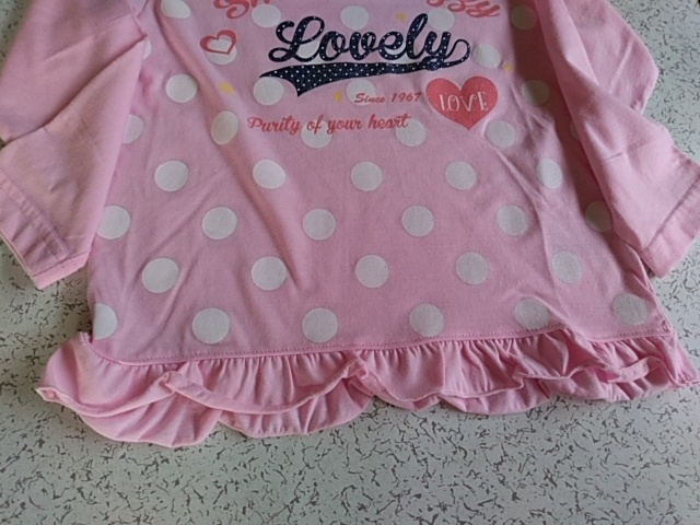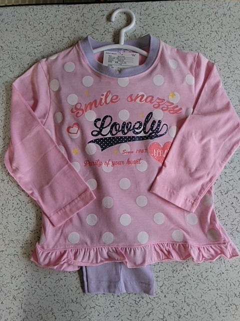 女児 ガールズ 長袖パジャマ ピンクx薄紫 ハート・ドット柄 120サイズ 春・秋用