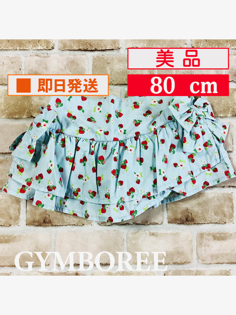 U_Bot-240【美品】Gymboree/カバーアップパンツ/80cm/水色/赤ちゃん/いちご/りぼん/子供服/女の子/綿100%/ジンボリー/インポート/送料無料