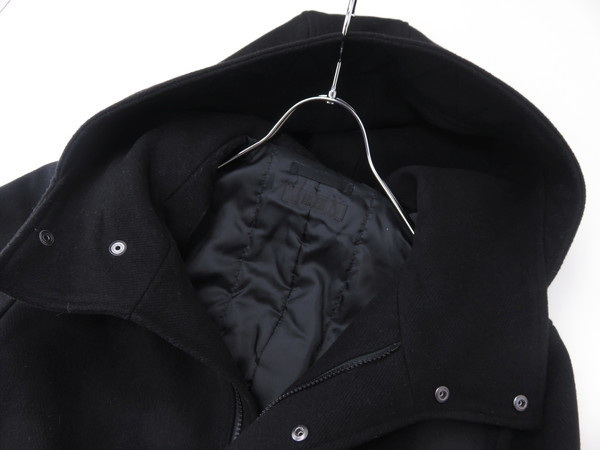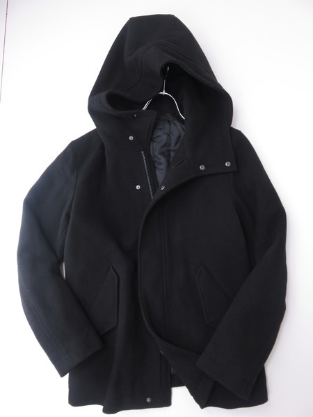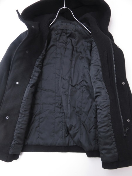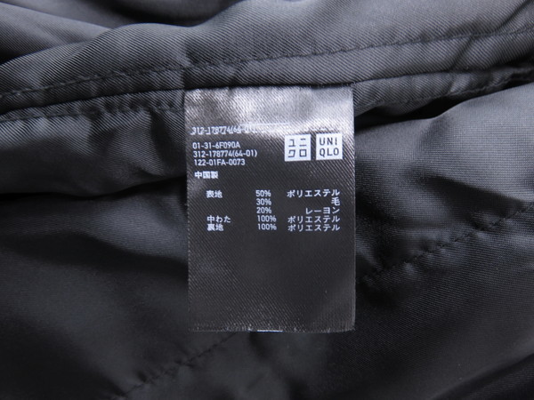 【送料無料】美品 ユニクロ UNIQLO フード付き 中綿入り ハーフコート 黒 S