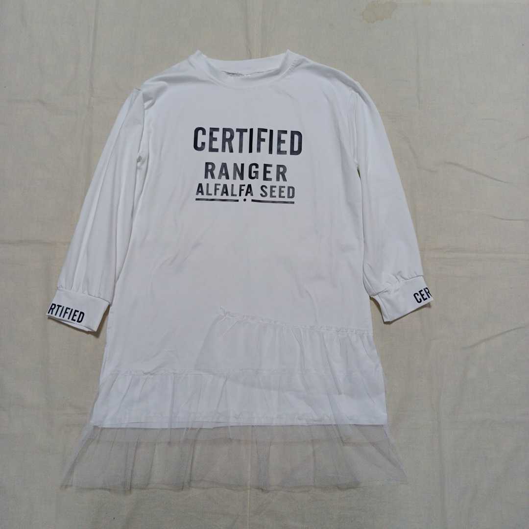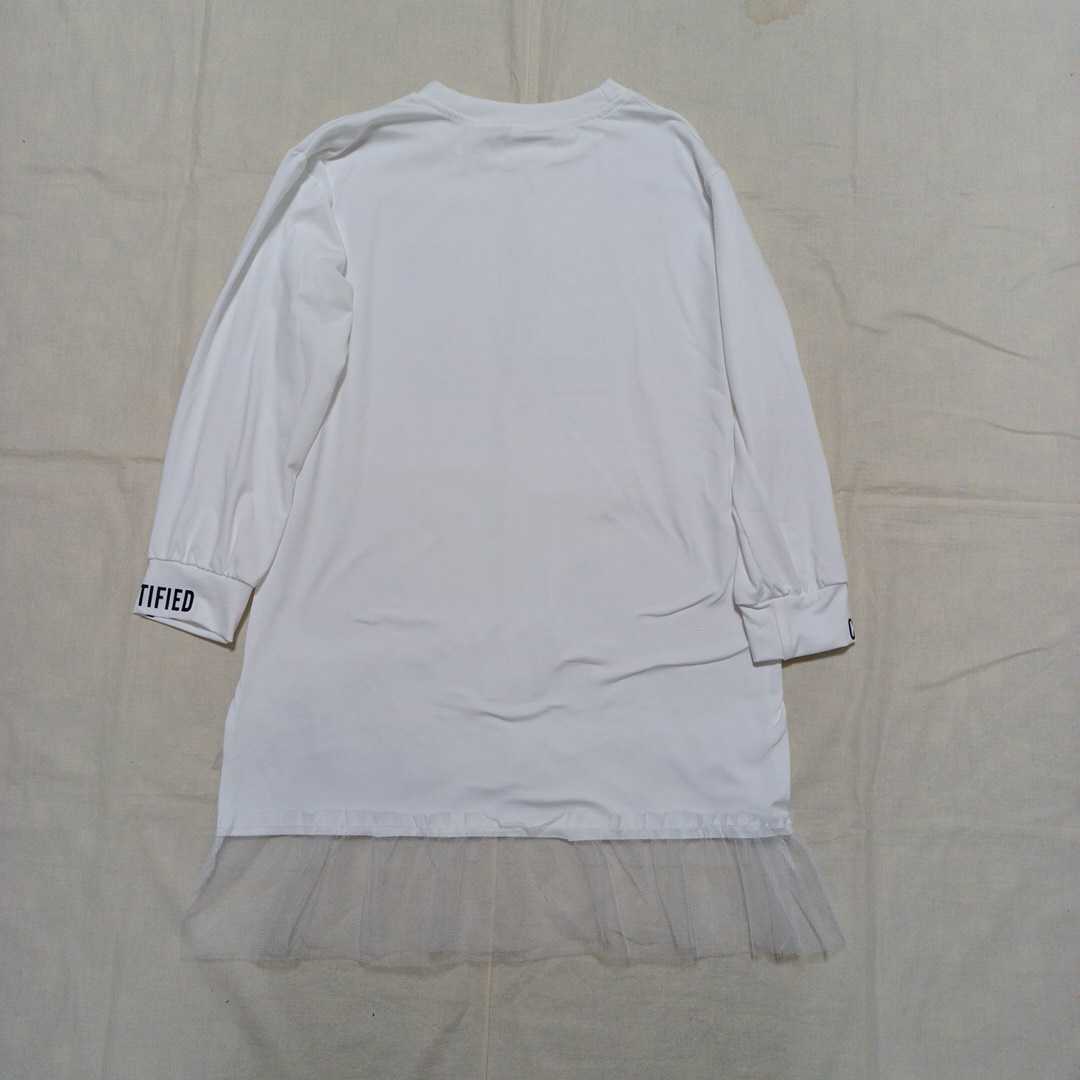 【未使用】【在庫処分】 子供服 キッズ 130 ワンピース チュニック 長袖 チュールスカート風 ロゴ シンプル 普段着 部屋着 ルームウェア