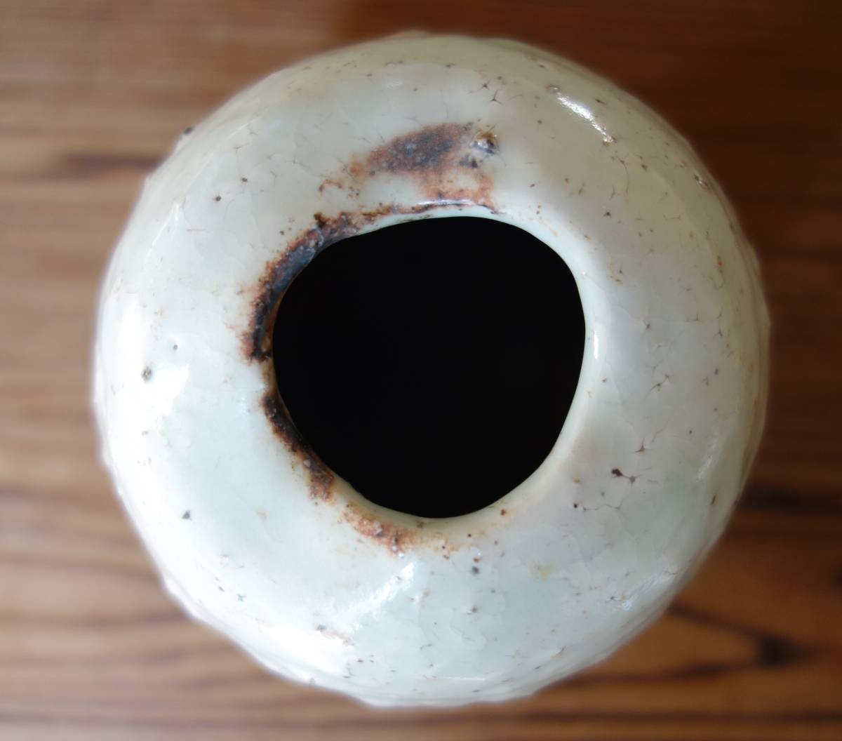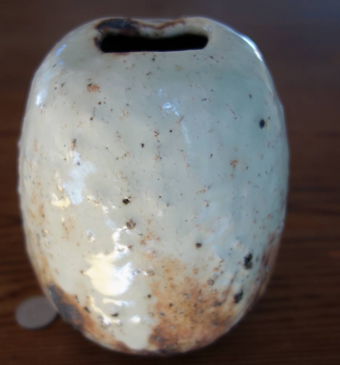 非常に珍しい品物、華道具、粉挽、卵形、花入、逸品、愛好家長期保管品、生活痕少々あり、総じて状態良好、使用可能、ご鑑賞・研究用、時代の良い品物とご理解頂き、状態は写真をご参考ください。