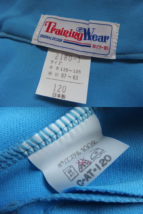 890280a【レトロな子供用のジャージ/上着 2点】ブルー系/120サイズ/日本製/長期保管品/ポリエステル100%/B級品/ほつれ強