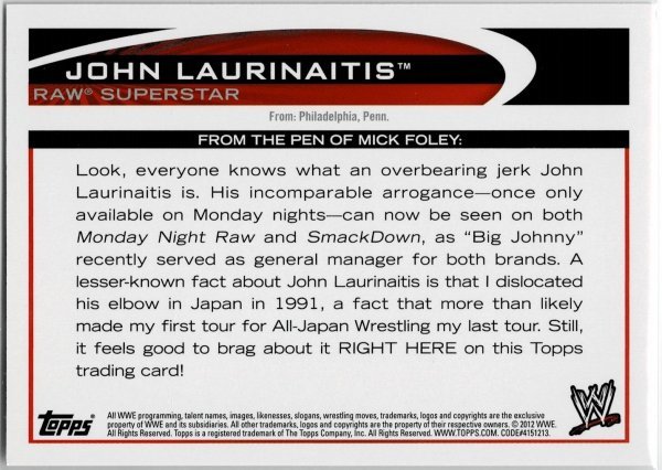 ☆ ジョン・ローリネイティス(ジョニー・エース) 12 Topps WWE 直筆サインカード ☆ | |
