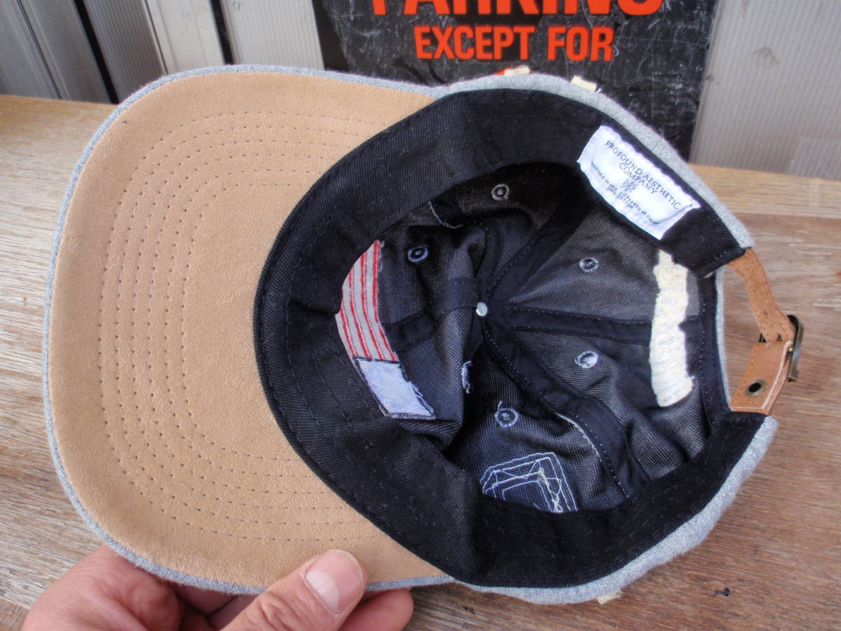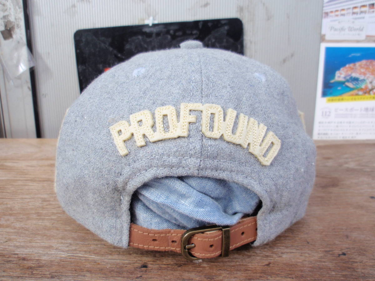 中古品ですので少し使用感ありますが、あまり使って無かったので目立った汚れや傷は無く状態は良いです。プロファウンドエステティックのグレー色なウール調のベースボールキャップ/野球帽になります(綿100%)。サイズは後ろのアタッチメントで調整できます。正規品。