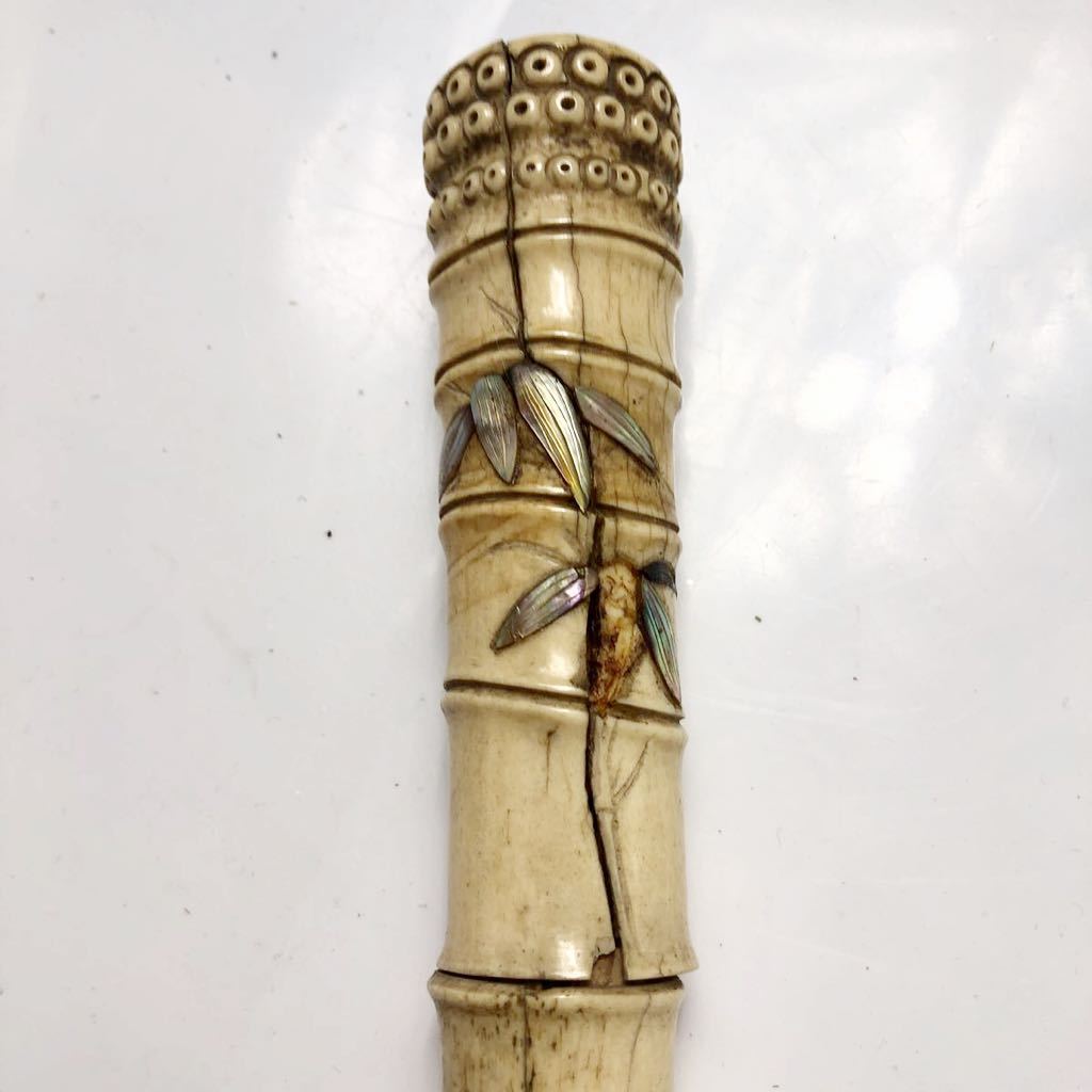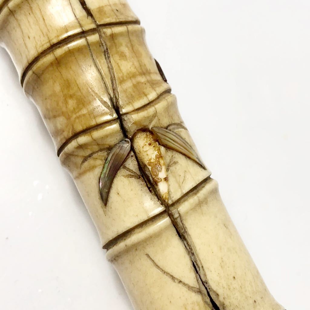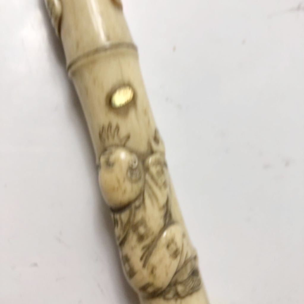 杖です。杖は竹の形に彫られており、とても精巧に出来ています。作品は古いものですので所々に割れなど見受けられます。