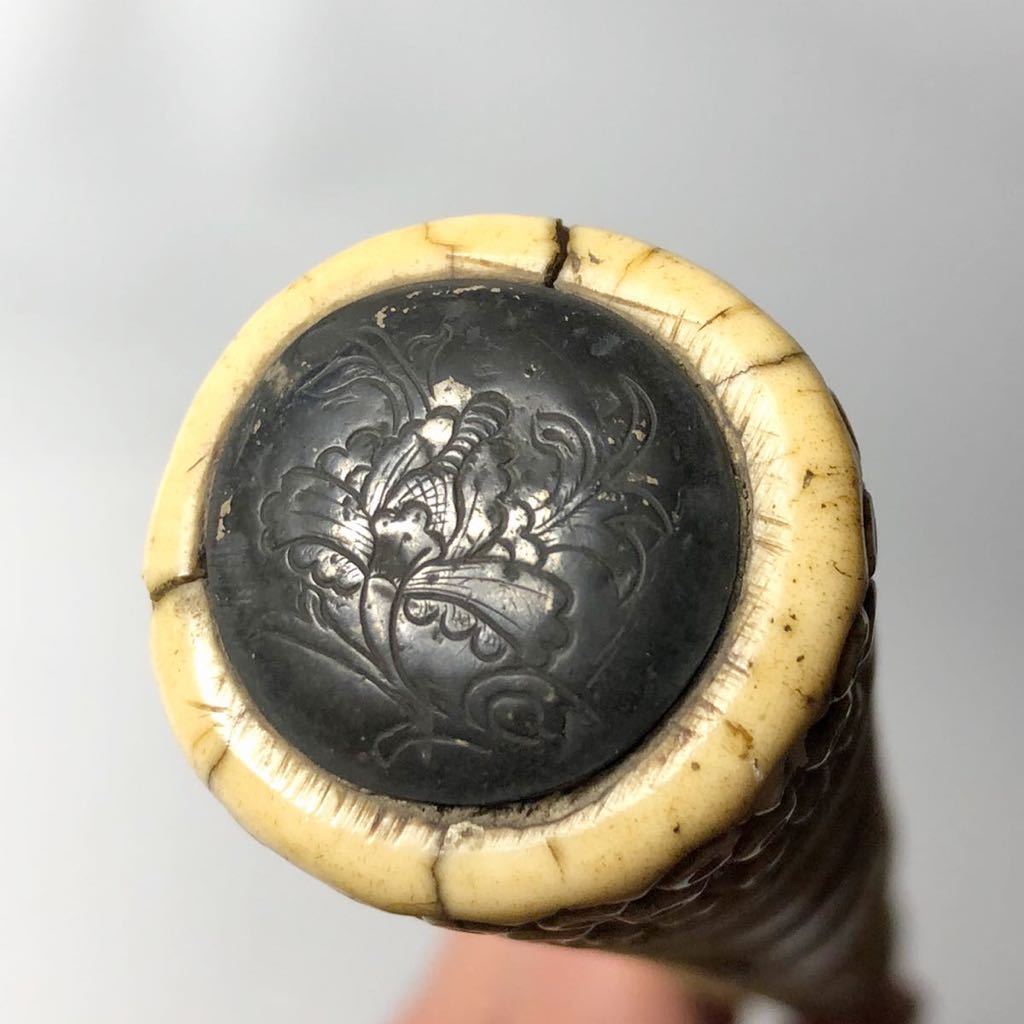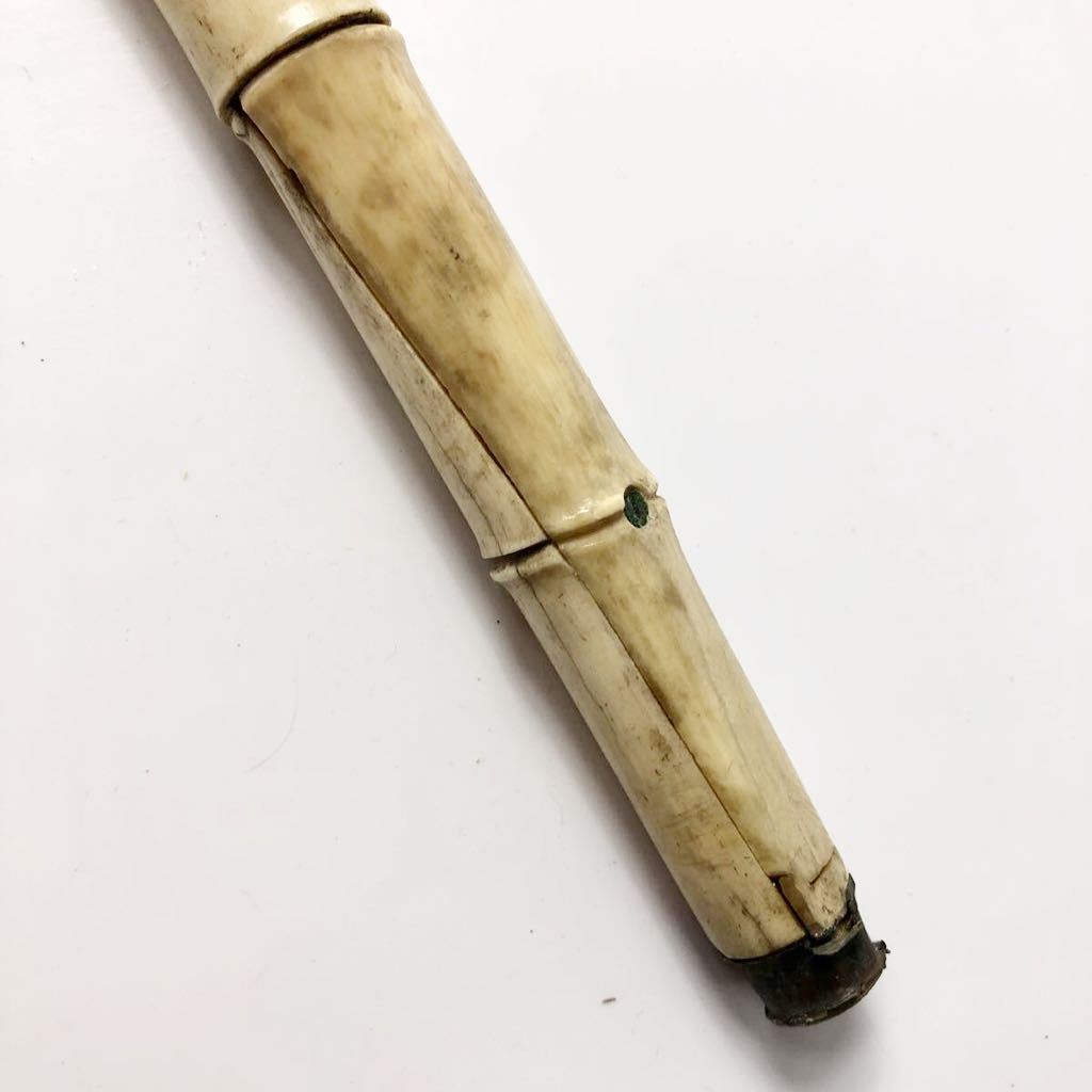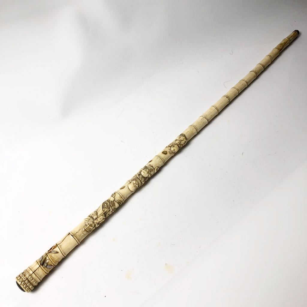 杖です。杖は竹の形に彫られており、とても精巧に出来ています。作品は古いものですので所々に割れなど見受けられます。