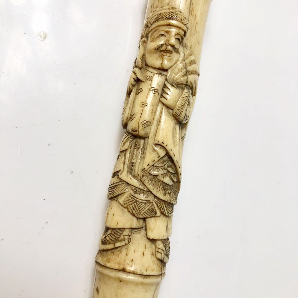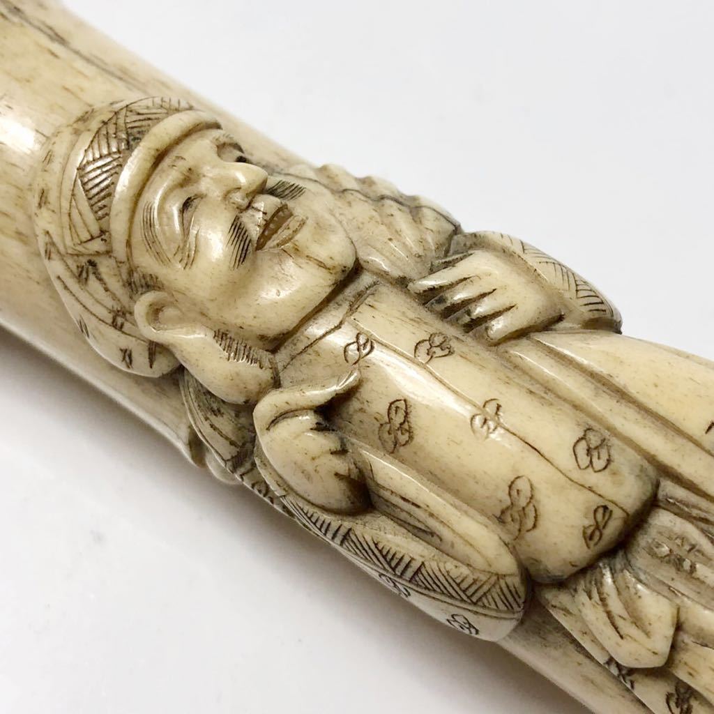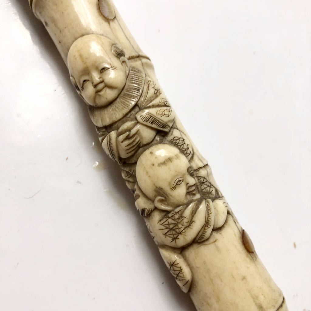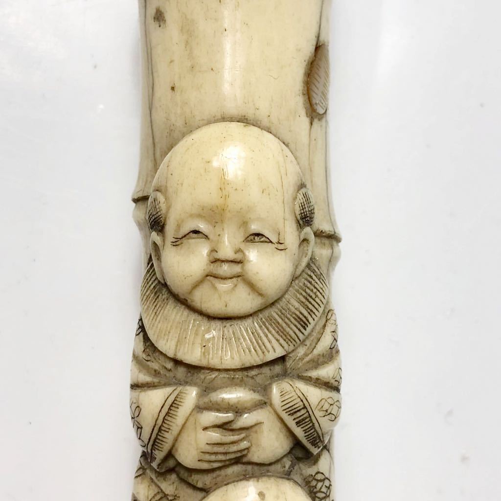 大黒とお金を拾う唐子の彫刻が彫られた出来の良い骨製の