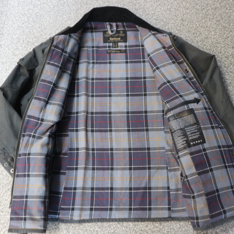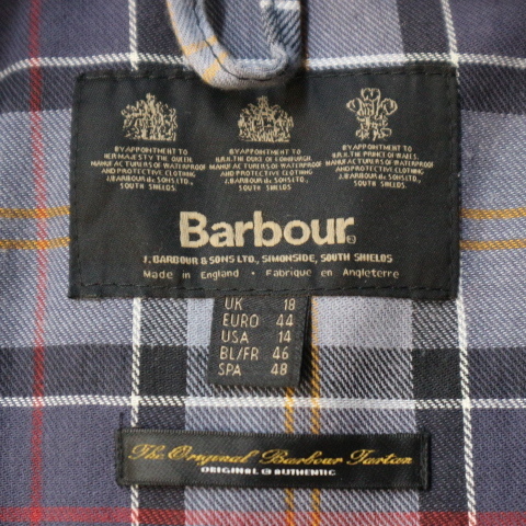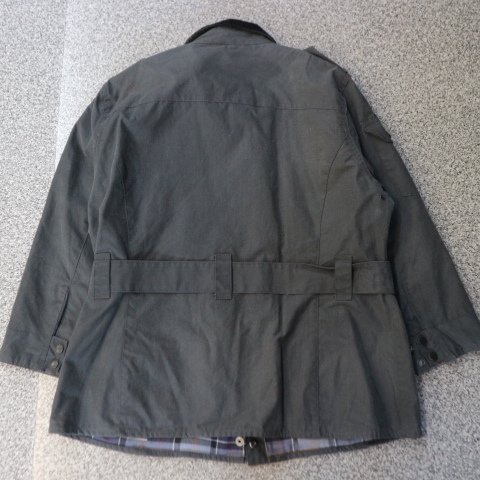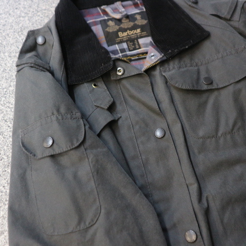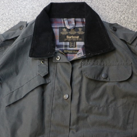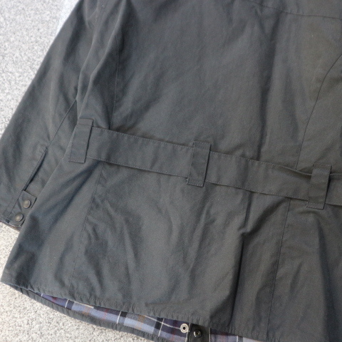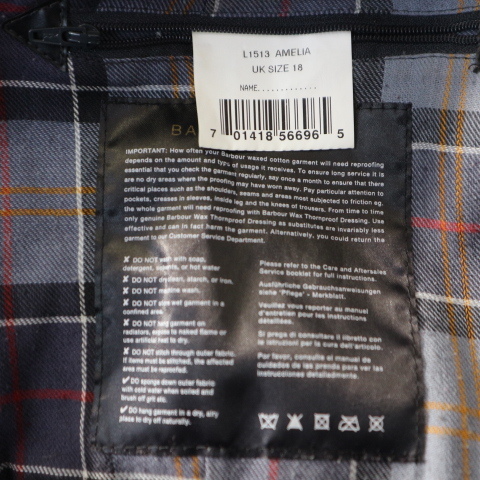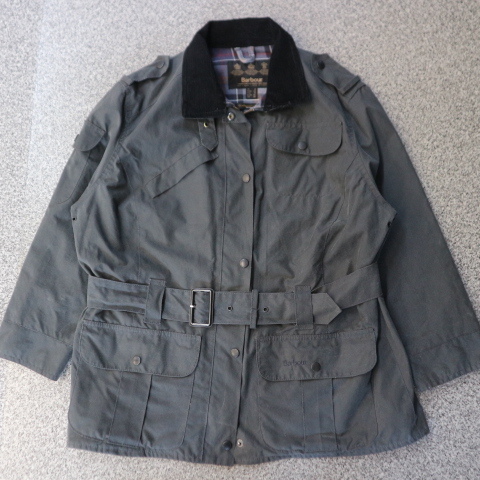 Barbour FLYWEIGHT WAX AMELIA オイルド ジャケット UK18 グレー バブアー アメリア 襟コーデュロイ チェック柄ライナー ベルト付き