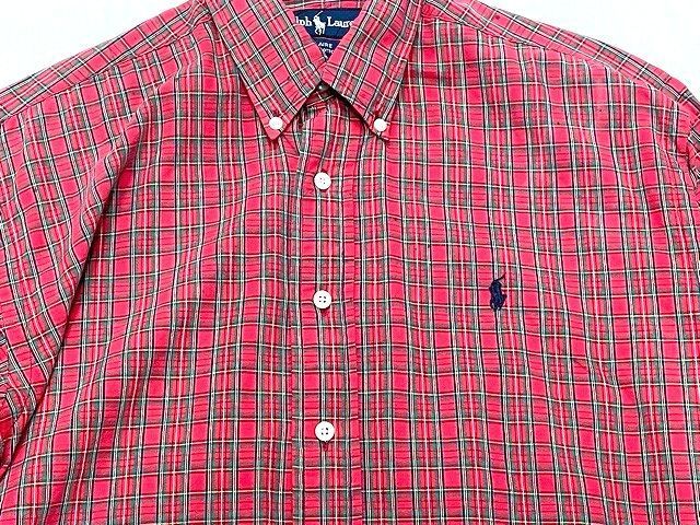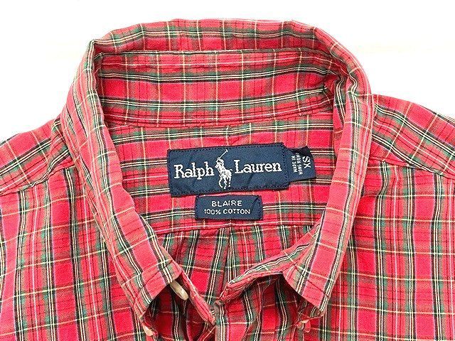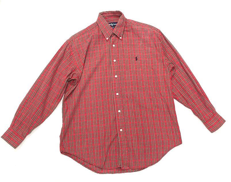 | 説明 | 90's 肩幅・身幅大き目シルエットのBLAIREのボタンダウンシャツ。 赤系のチェック。 ポニー刺繍はダークネイビーです。 香港製 |
